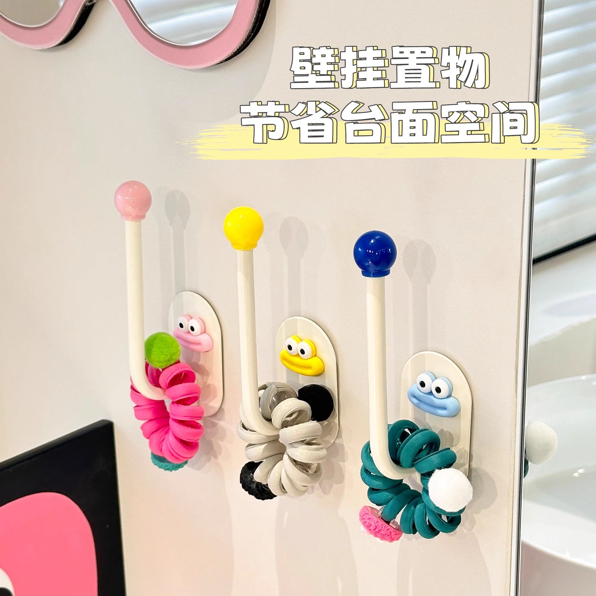 Туалетная комната, полка для хранения резинок для волос, подвесная резинка для волос, заколка для волос, стержень для хранения шариков для ванны, настенный крючок без ударов