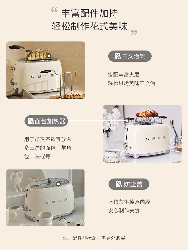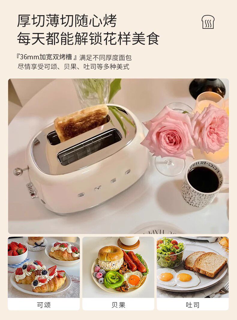 SMEG Тостер Smeg, многофункциональный бытовой тостер, тостер, старинная бытовая машина для завтрака TSF01