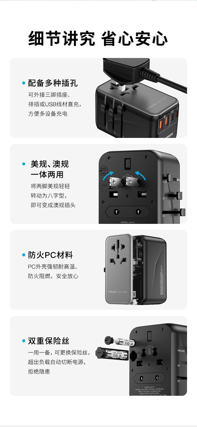 Momax Moms конвертирует заглушку 100 Вт азот увлажняющий глобальный европейский британский британский туристический плагин