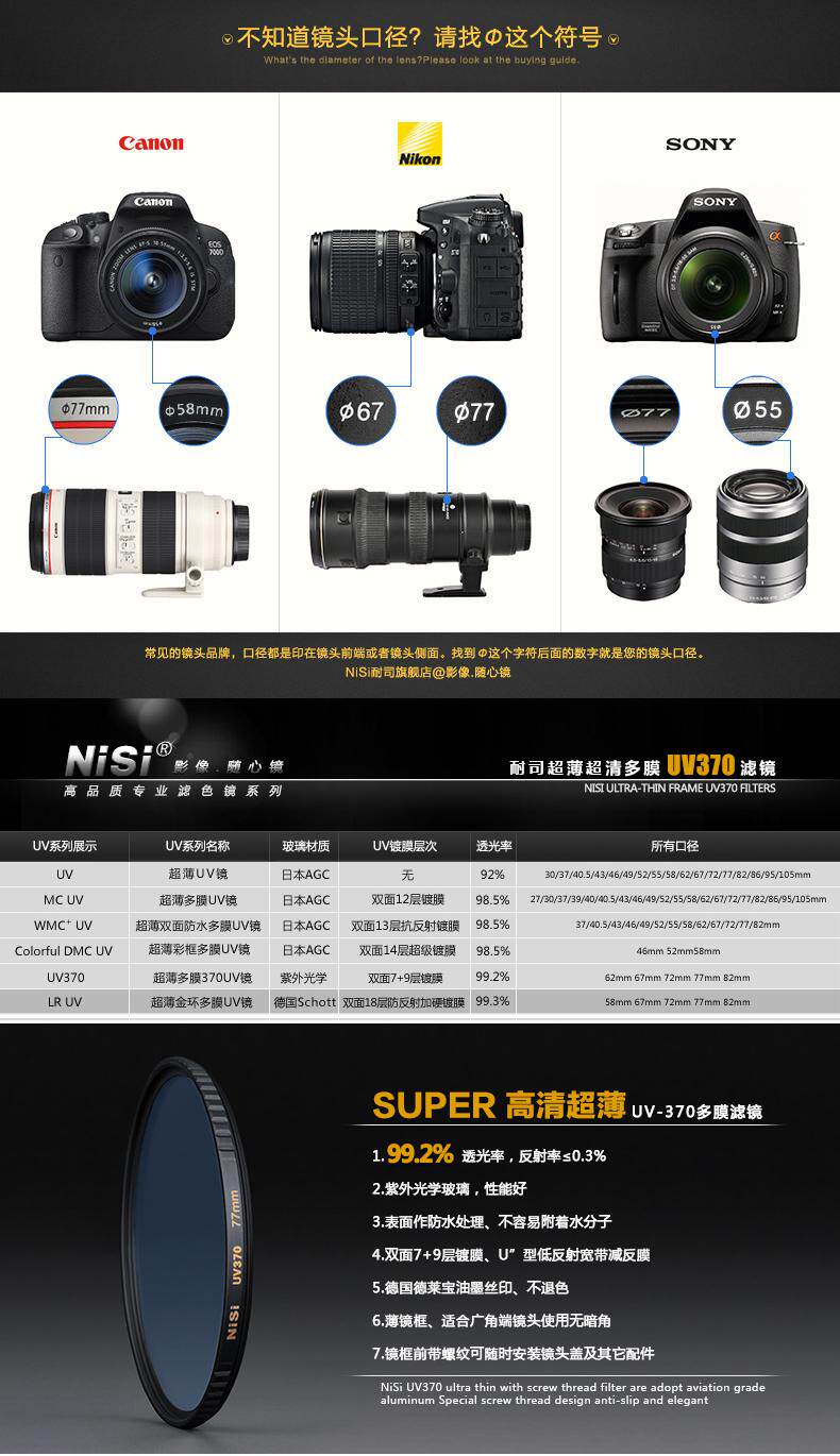 Nisi nisi uv370 uv62 67 72 77 82 мм 庋 庋 6 嗖 фильтр ян
