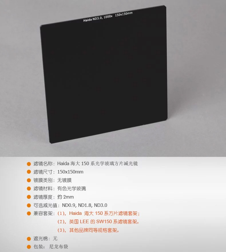 Haida Море Большое освещение зеркало и середина разгрового зеркального квадратного фильтра квадратный вставка nd 150 × 150 мм