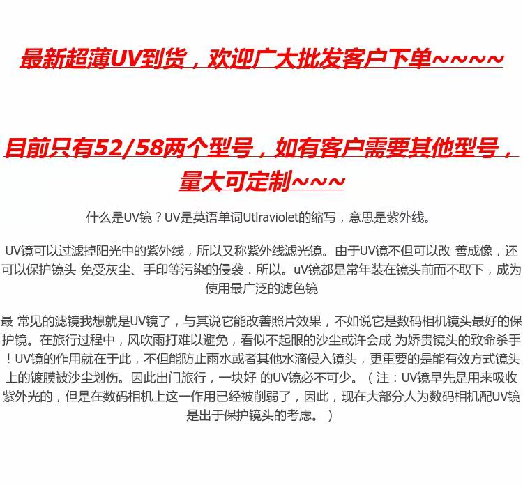 Экспорт внешней торговли Ultra -Thin UV -фильтр 49/52/55/58/67/72/77/82 мм УФ