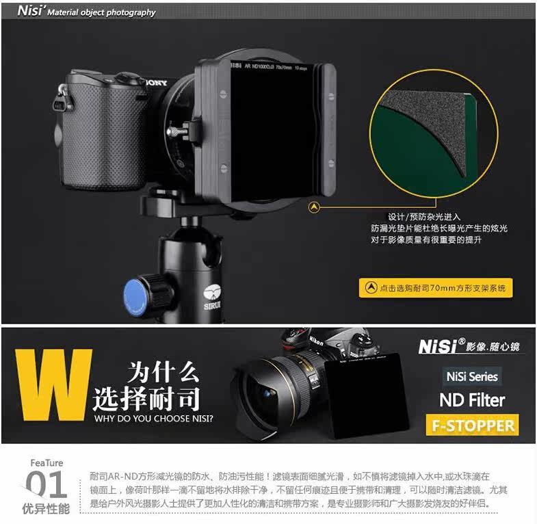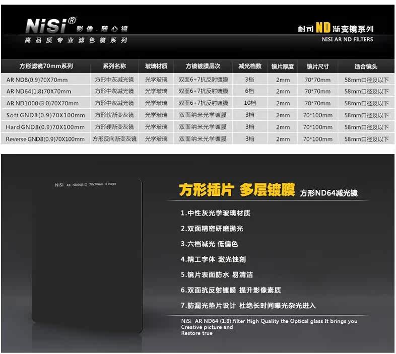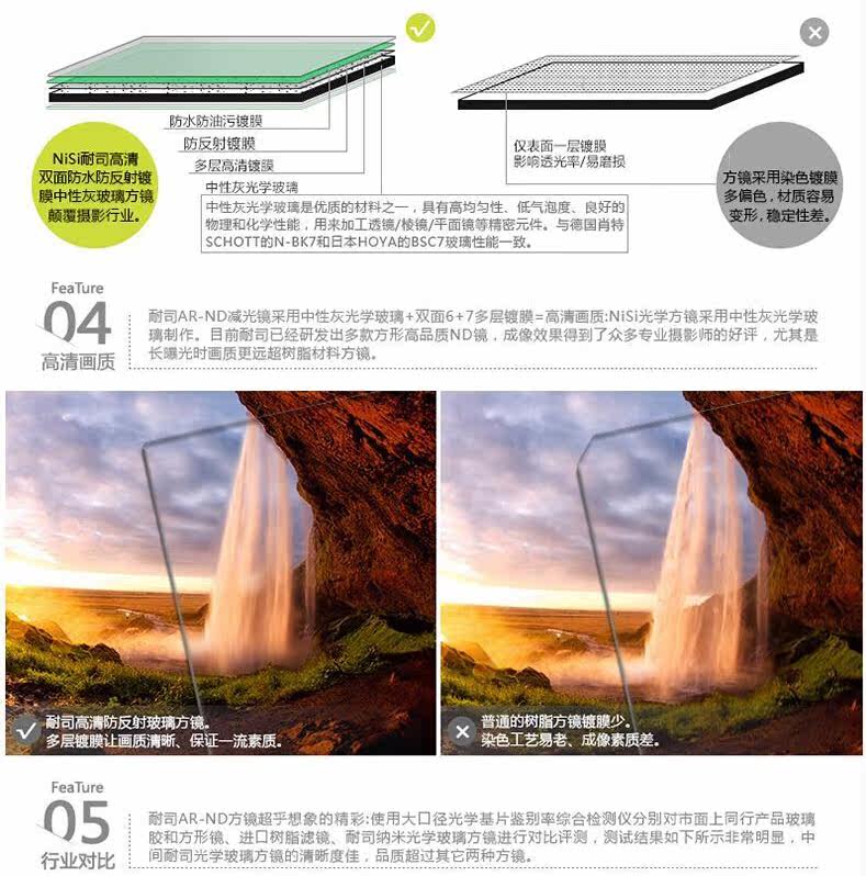 Нигерия 70 -мм и зеркал среднего серого зеркала ND64 Микроструктура в сером плотном зеркальном квадратном квадратном зеркале зеркало света