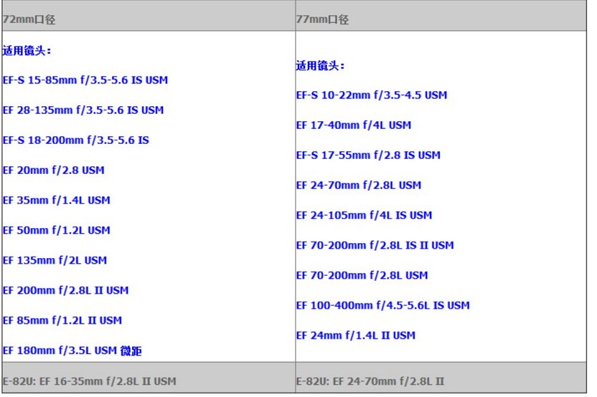 | Размер объектива: | 49mm, 52mm, 58mm, 62mm, 67mm, 72mm, 77mm, 82mm |