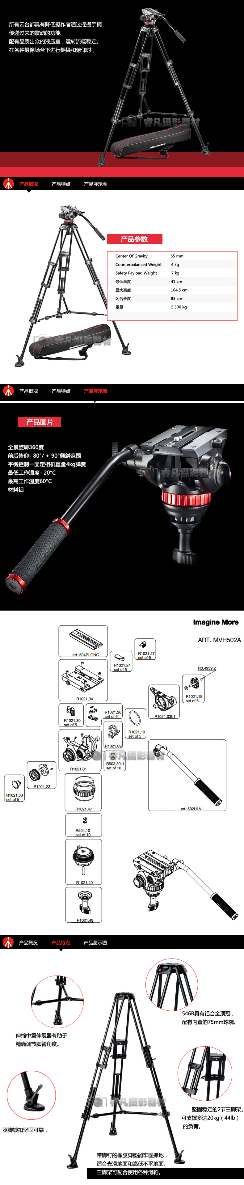Manfu Manfrotto MVH502A+546BK-1 Фотография камера камера штативы