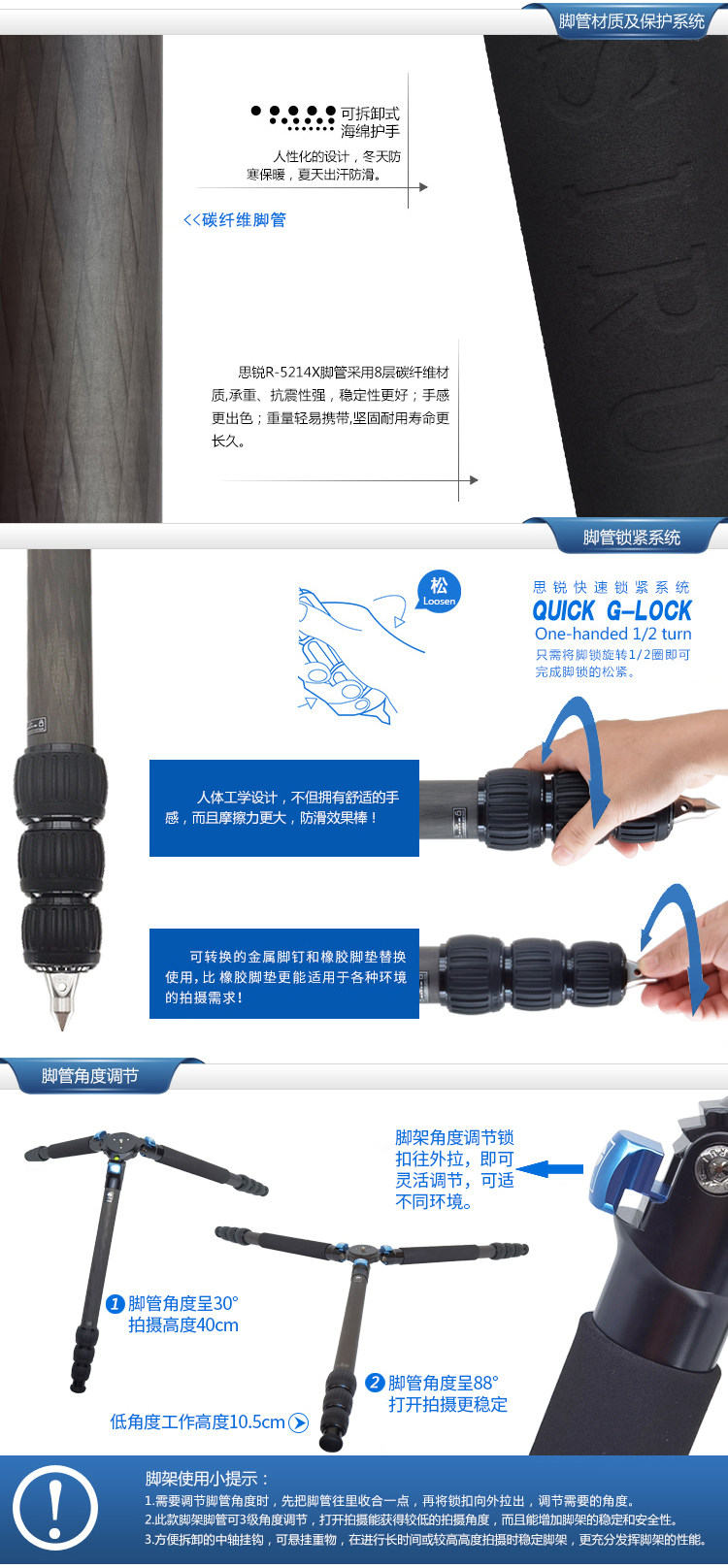 思锐 Штатив из углеродного волокна, камера видеонаблюдения, портативная трубка, 5214x
