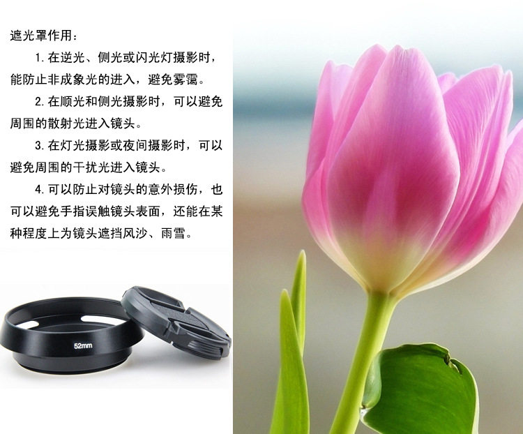 Спецификация】:Внутренний диаметр рта составляет 52 мм спираль, диаметр наружного рта составляет 58 мм, а 58 -миллиметровый крышка объектива каждой марки можно использовать.