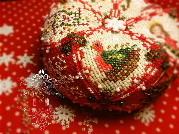 Вставка иглы для рождественской булочки с 15 частями, грейпфрут Shisi, подлинный набор поперечных стежков DMC.
