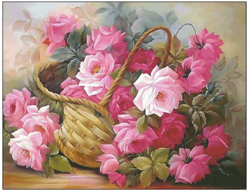 Новая печатная французская подлинная DMC Cross -Stitch гостиная рисунок масляная картина масляная корзина розовая роза