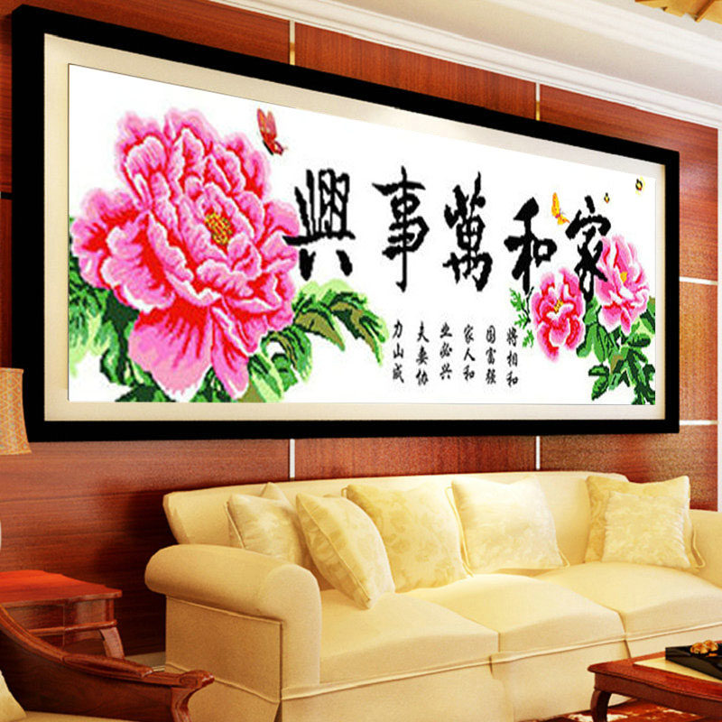 Домашняя и шедевр поперечная вышивка 2 млн. Новая гостиная Новая гостиная Большая пиони цветы кросс -шитчатка дома и мастер Син Бриллиант