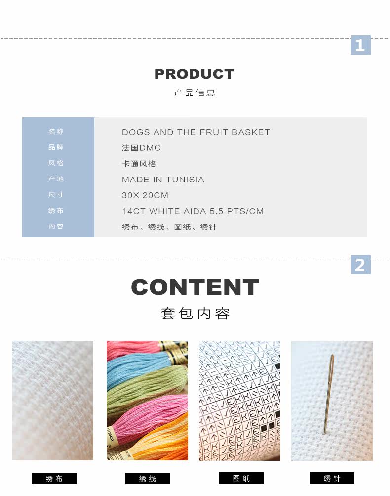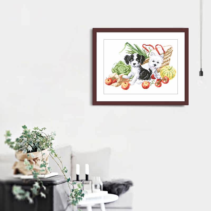 Французская DMC 14CT Dog and Fruit Basket