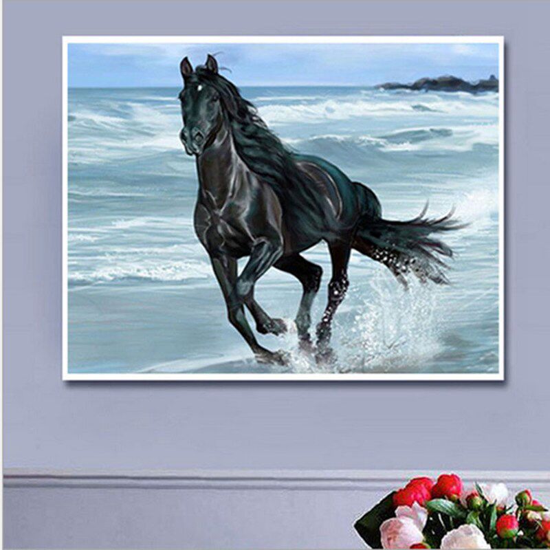Бриллиантовая буровая лошадь 5d кубик Рубик круглый животный бриллиант, вышитый темная лошадь Новая гостиная, паста бухгалливы Cross удары Mercedes Mercedes
