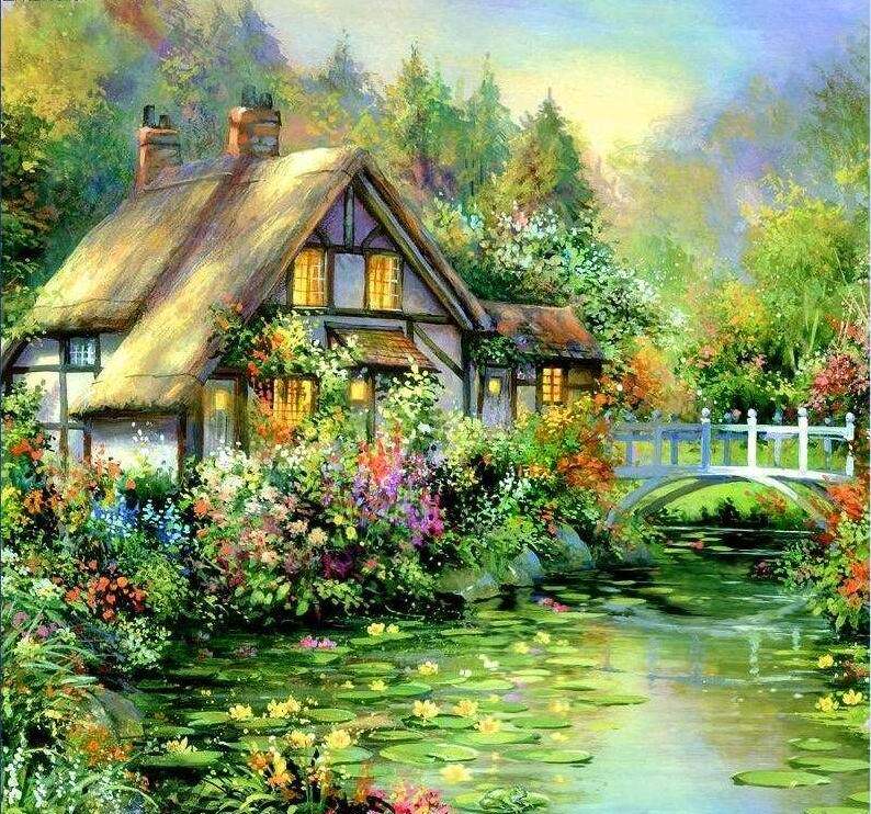 Новая печатная французская подлинная DMC Cross -Sitch Living Room Большая живопись Пейзаж картина красивая родина Qingxi yinglu
