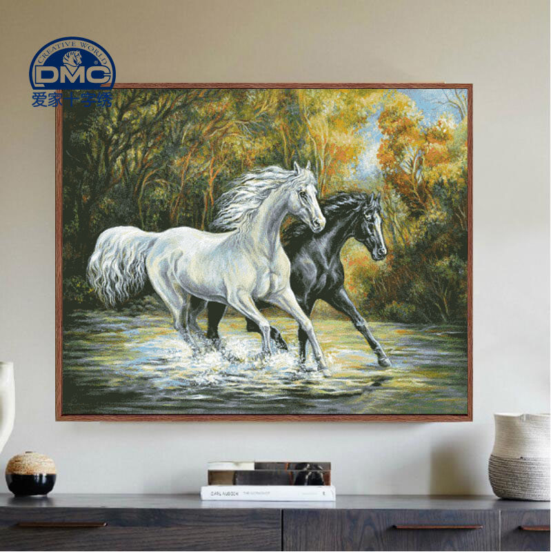 DMC Cross -Шичка набор гостиной спальни для спальни точная печать вдоль лесного потока