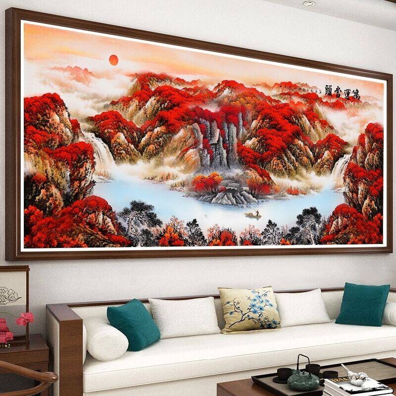 Атмосферная линейная вышивка пересечения гостиной ландшафтной живописи карта ландшафтная карта Hongyun Первый 2023 Новая полная вышивка ручной вышивки ручной работы
