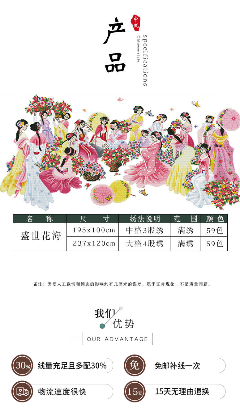 2024 Новая вышивка ниточной вышивки поперечная вышивка процветающего цветочного моря.
