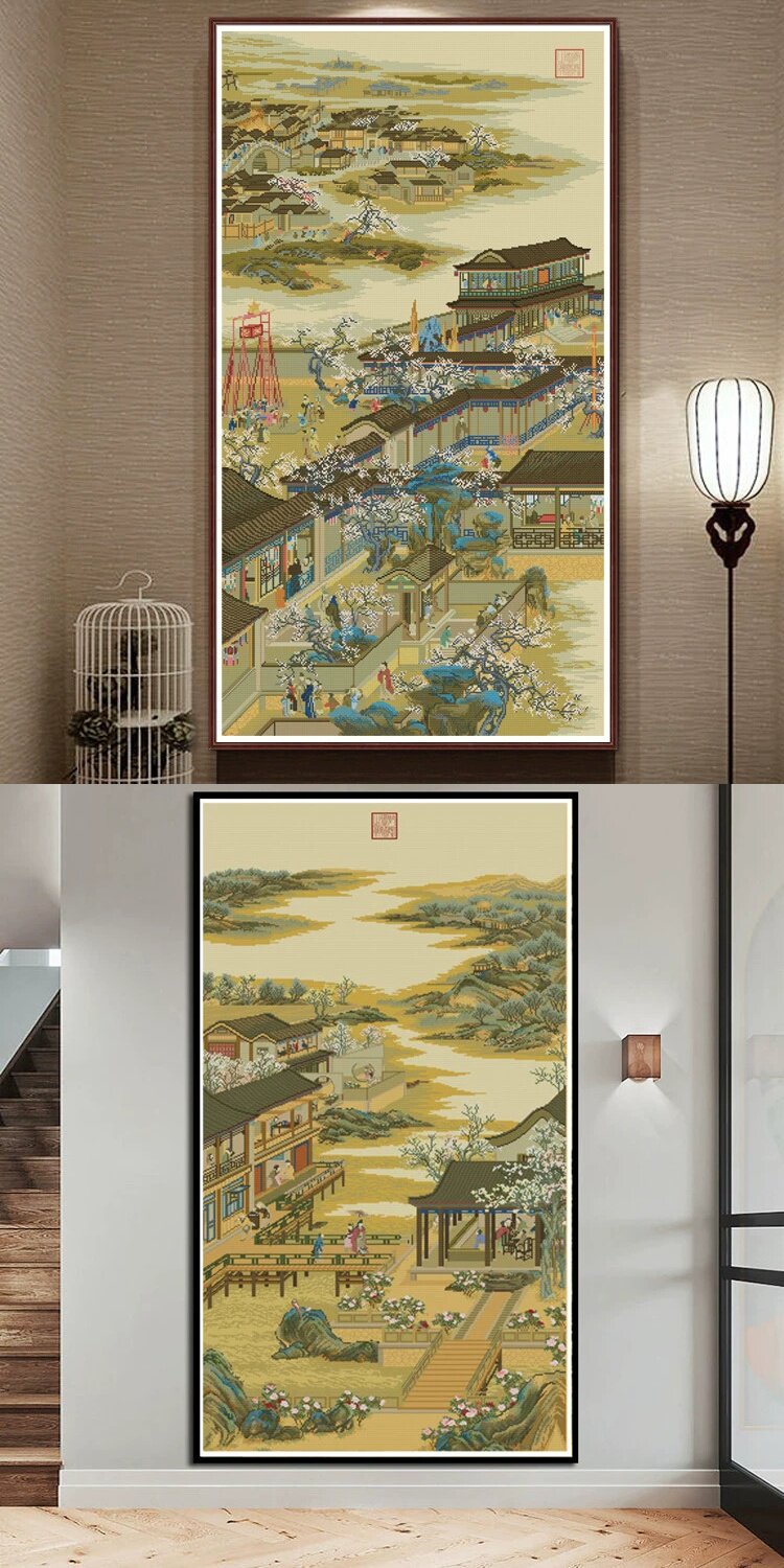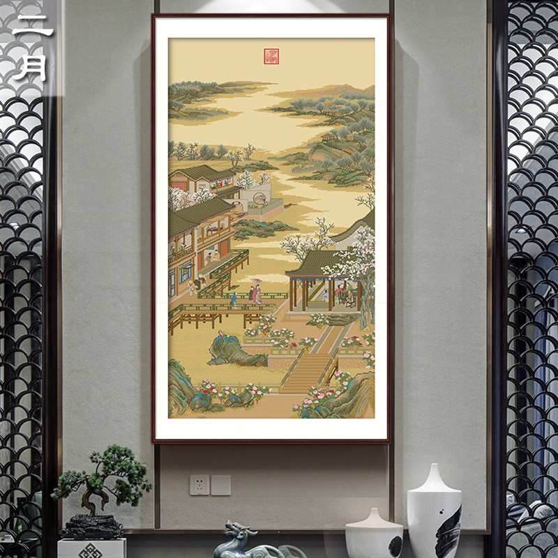 Классическая коллекция Юнчжэн, декабрьская вышивка крестиком 2025, новая нить для вышивки гостиной, вертикальный вход, полный комплект, кабинет Мин и Цин