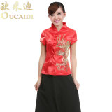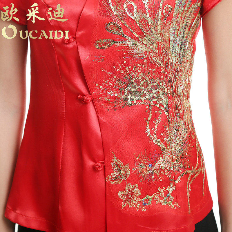 Платье, красная цветная летняя одежда для работы, короткий рукав, китайский стиль