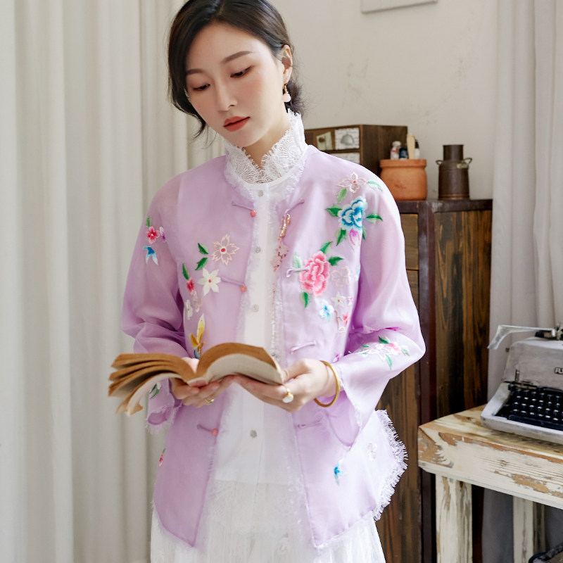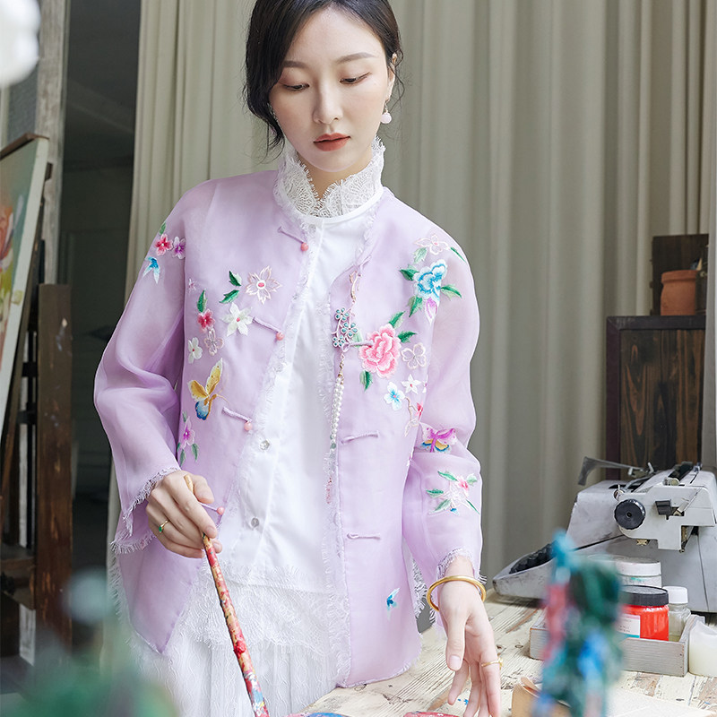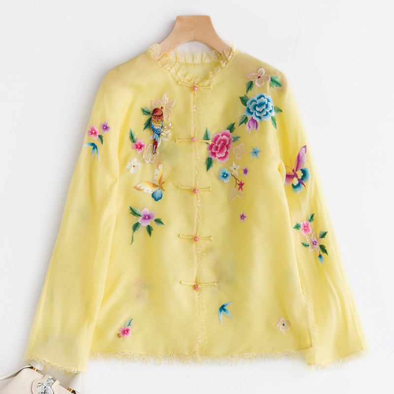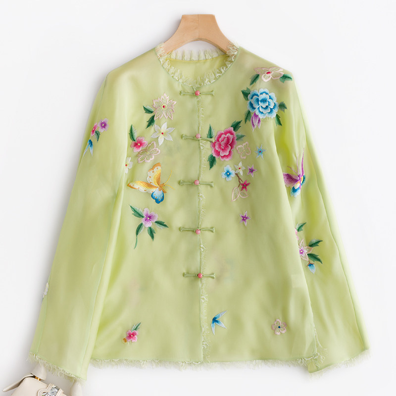Шелковая кружевная вышивка с бабочкой, куртка, с вышивкой, китайский стиль