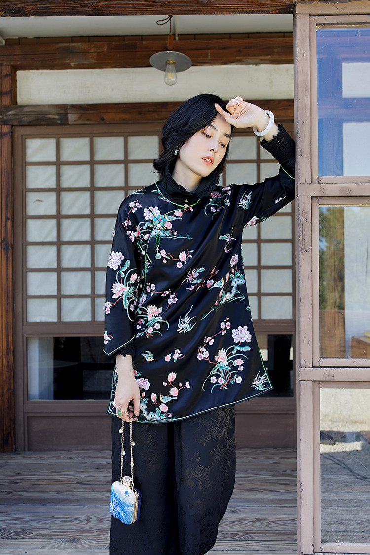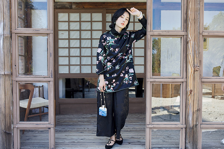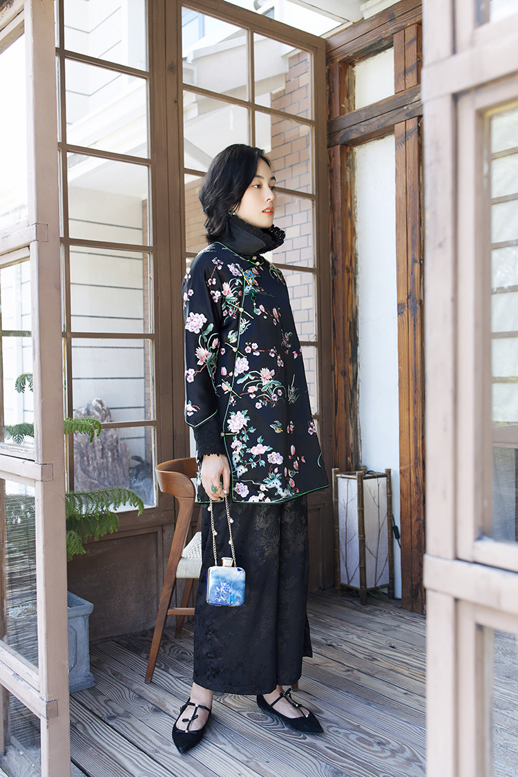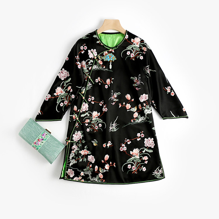 Осенняя этническая ретро короткая куртка с круглым воротником, этнический стиль, китайский стиль, средней длины