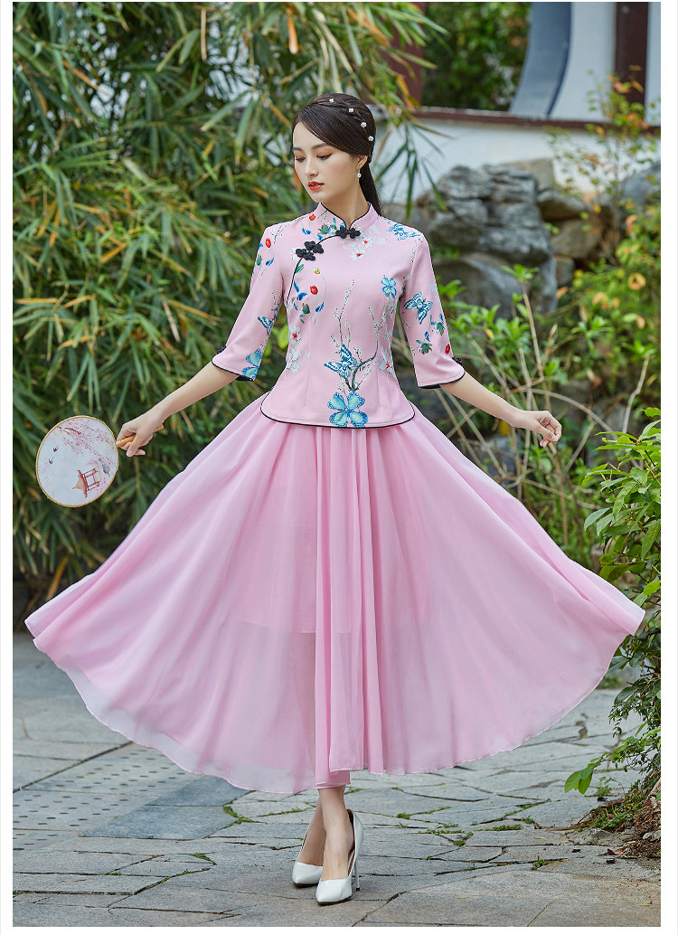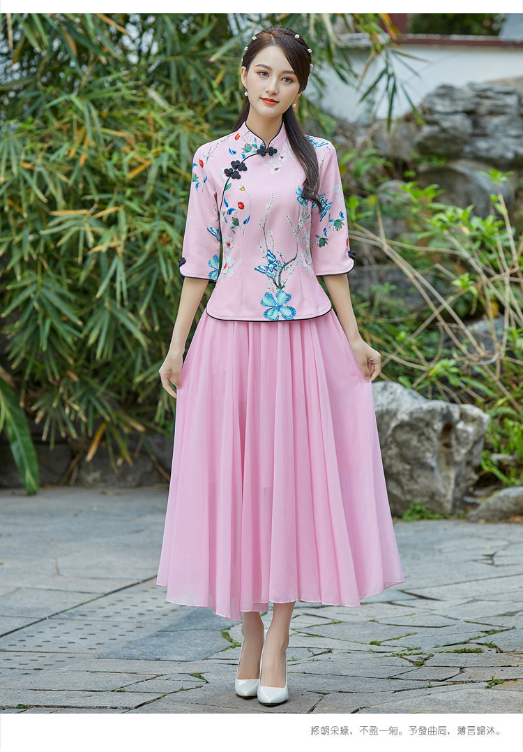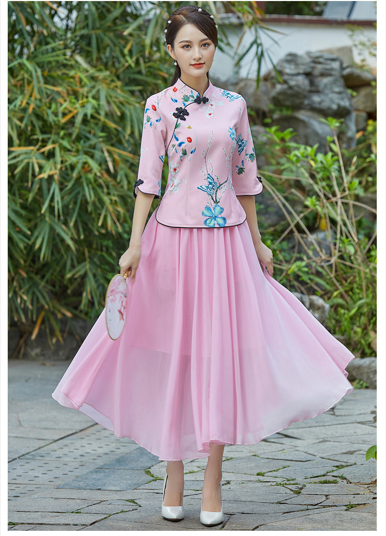 Летняя летняя одежда, этническое ципао, костюм, ханьфу, комплект, китайский стиль, этнический стиль