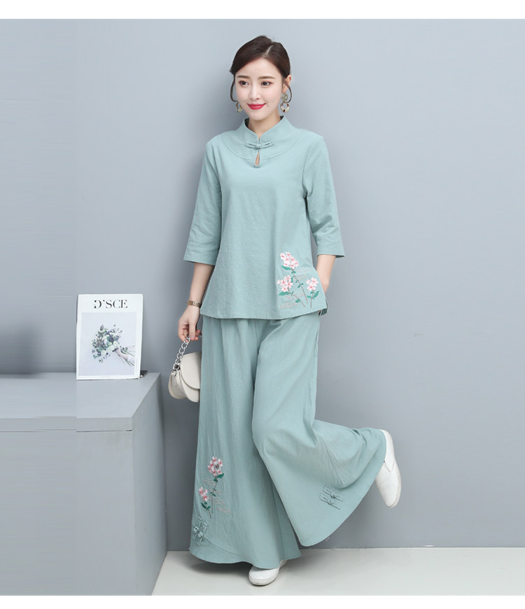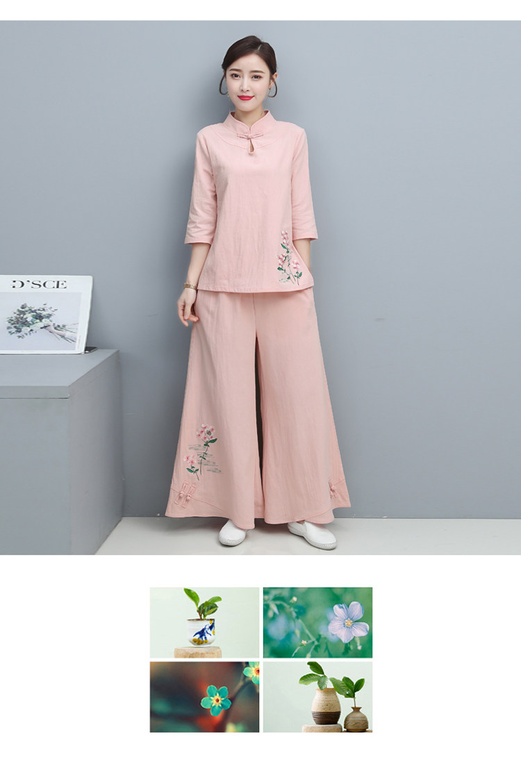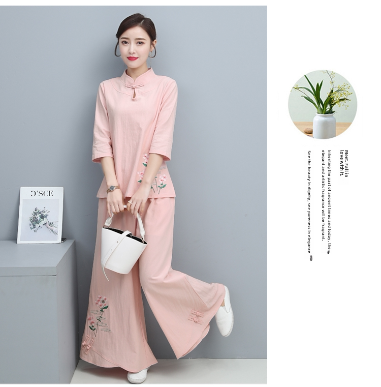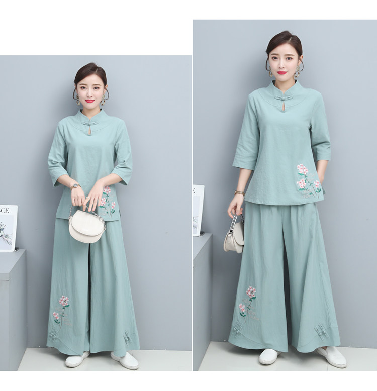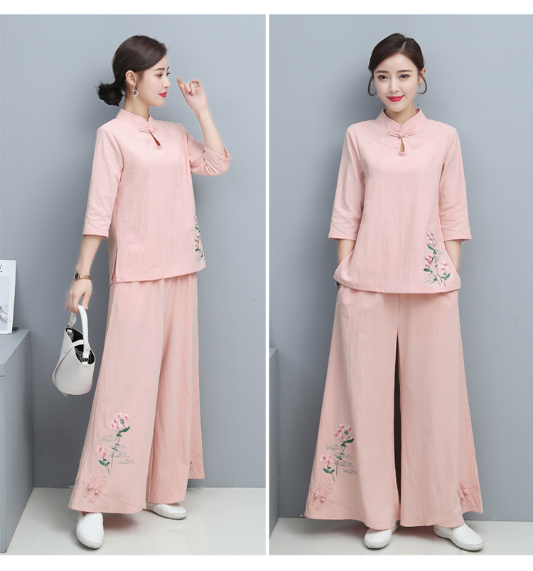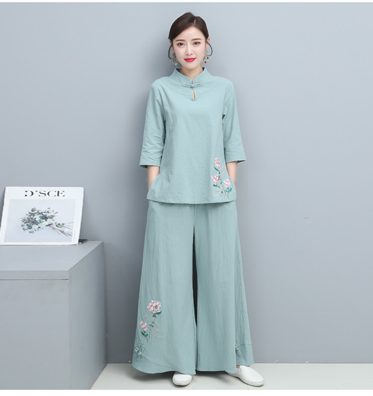 Одежда для йоги, комплект, китайский стиль, из хлопка и льна