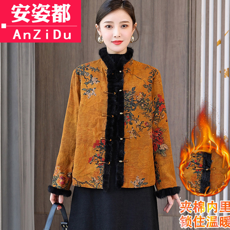 Бархатный стеганый ретро пуховик, куртка, китайский стиль