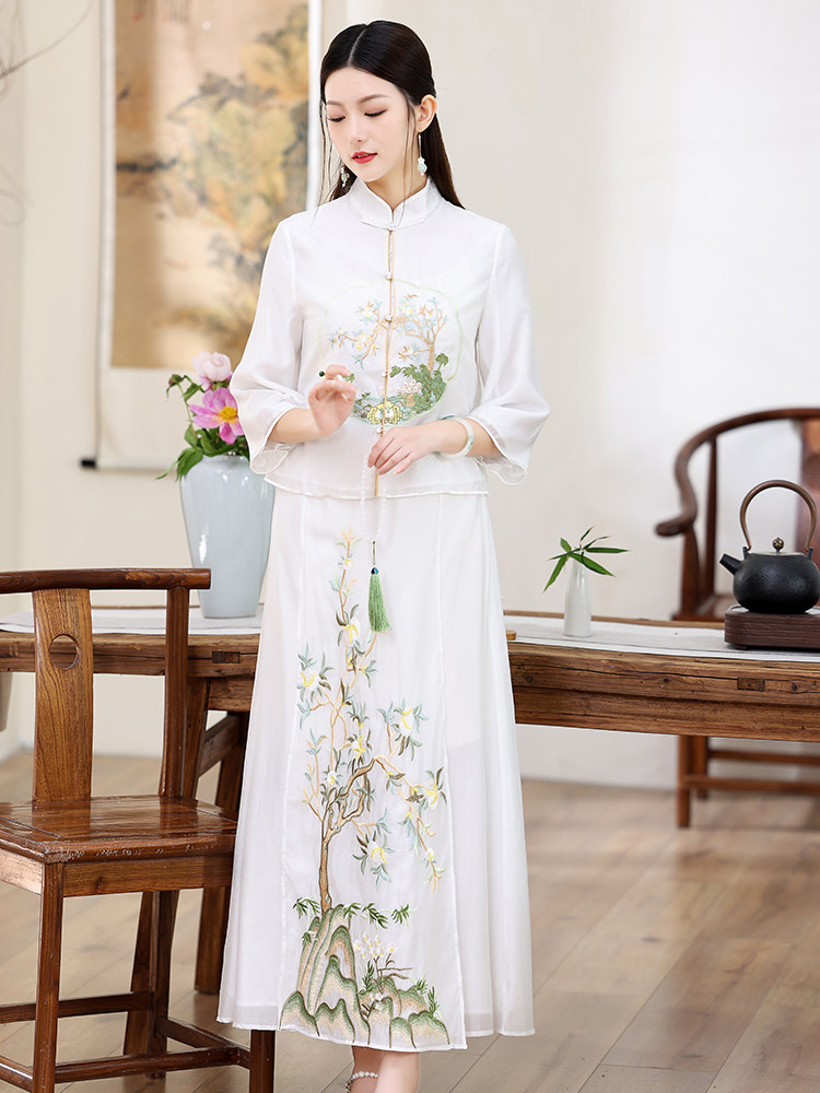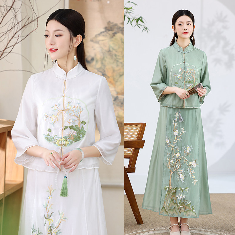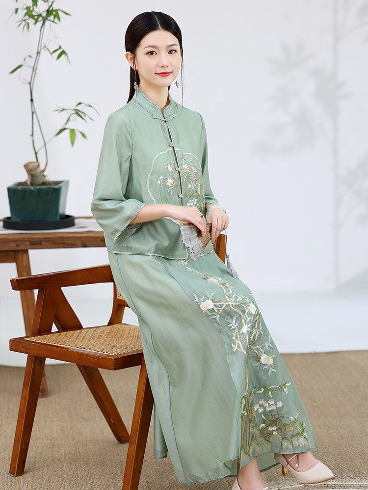 Ханьфу, ретро комплект, китайская вышивка, с вышивкой, китайский стиль