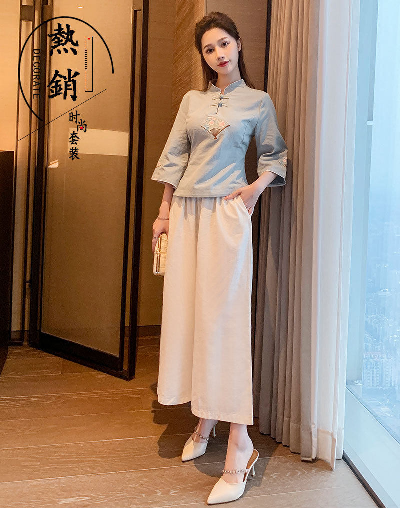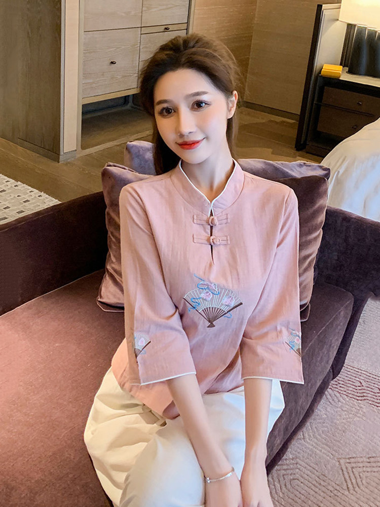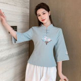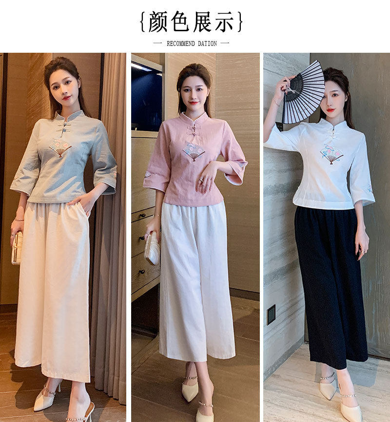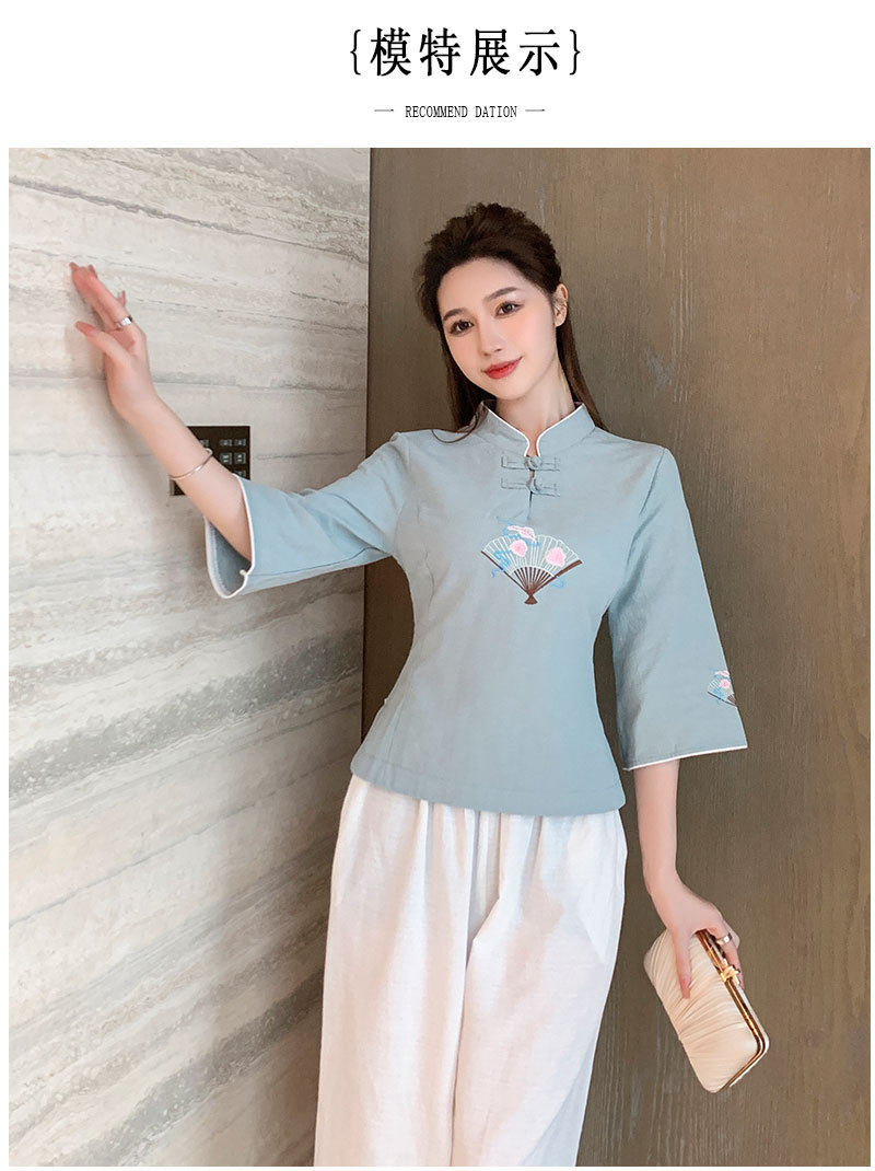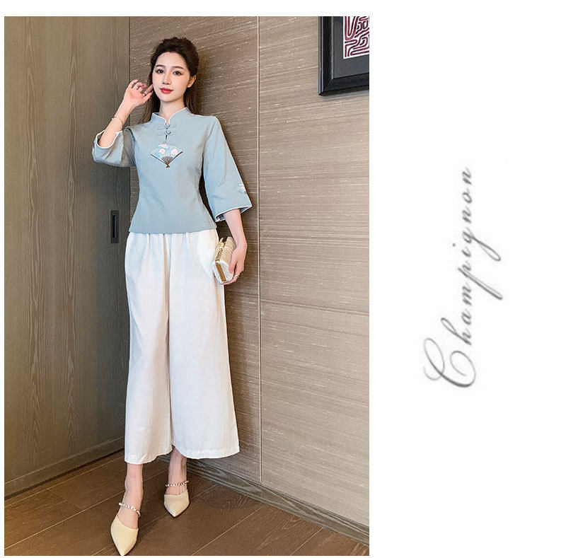 Улучшение Tang Suit женские топы модный китайский стиль zen Zen подходит для знаменитого национального стиля чайная одежда Учитель чай -искусство китайская медицина Клиника рабочая одежда