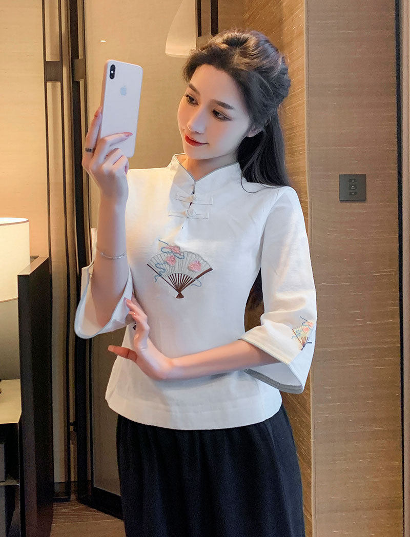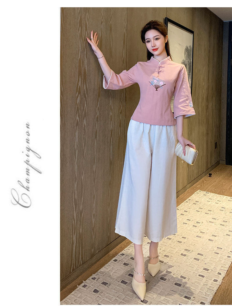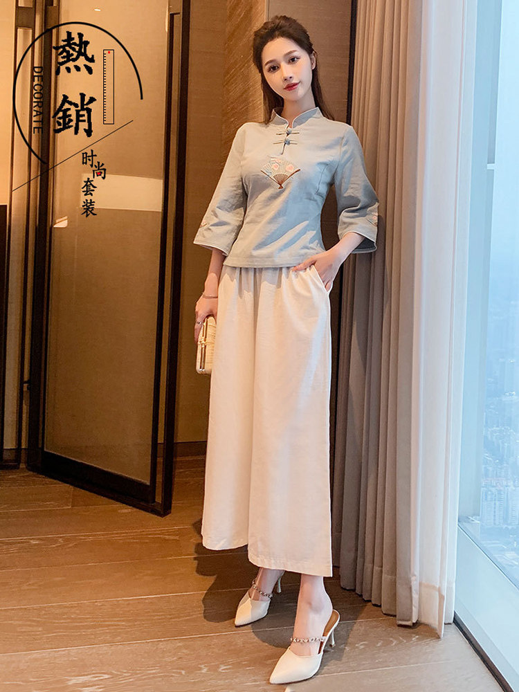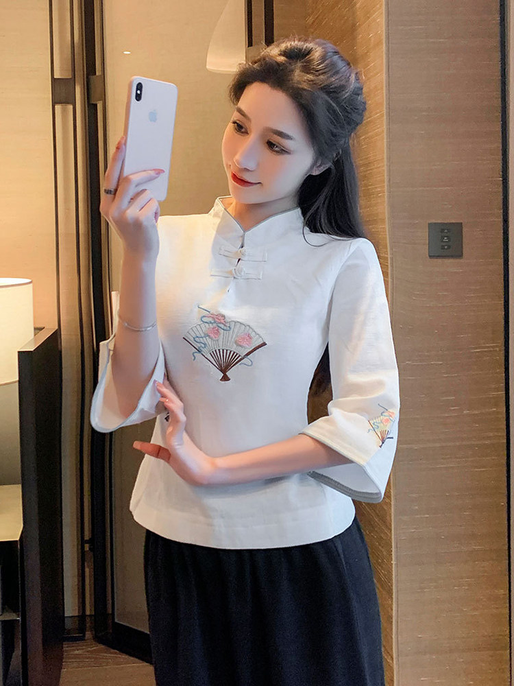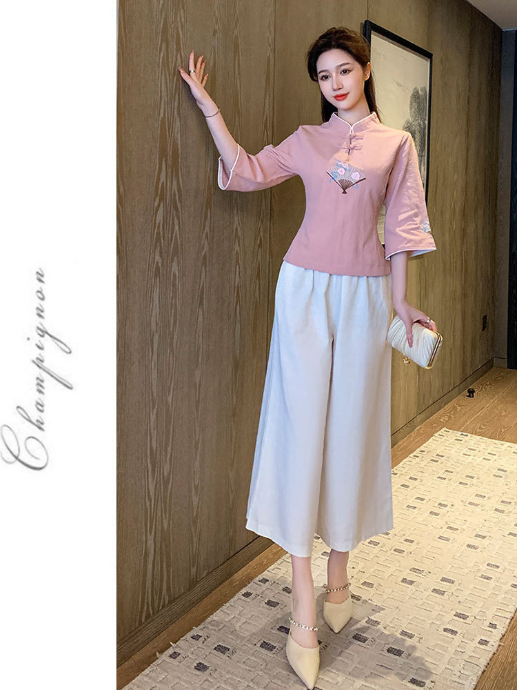 Улучшение Tang Suit женские топы модный китайский стиль zen Zen подходит для знаменитого национального стиля чайная одежда Учитель чай -искусство китайская медицина Клиника рабочая одежда