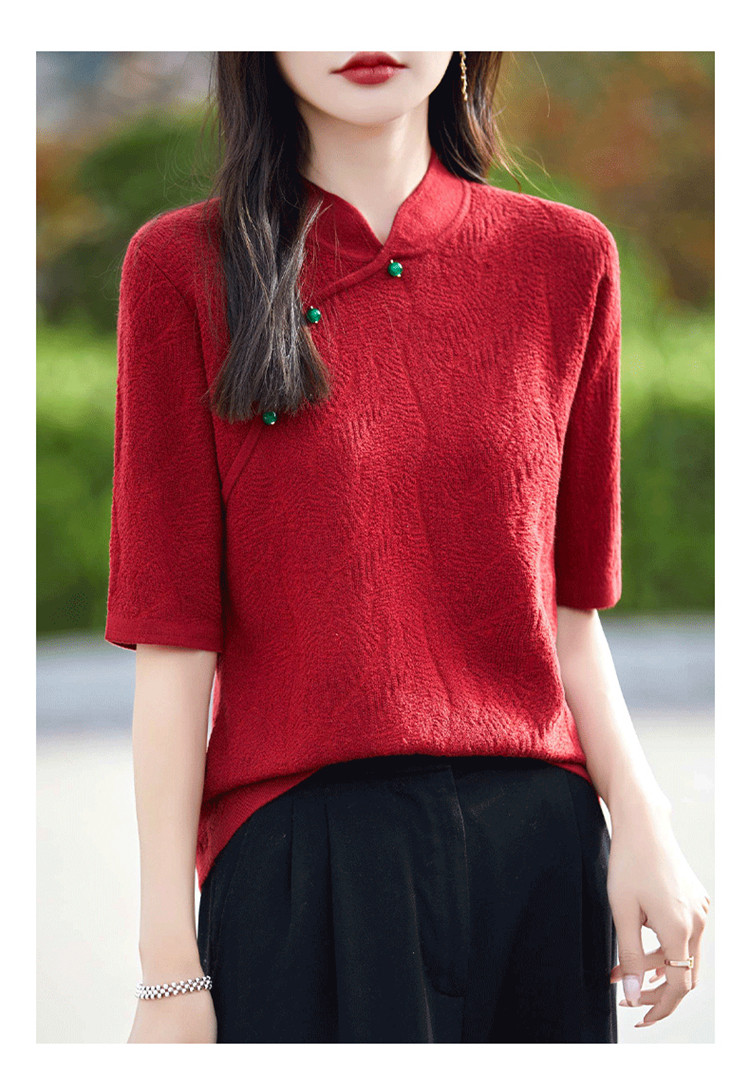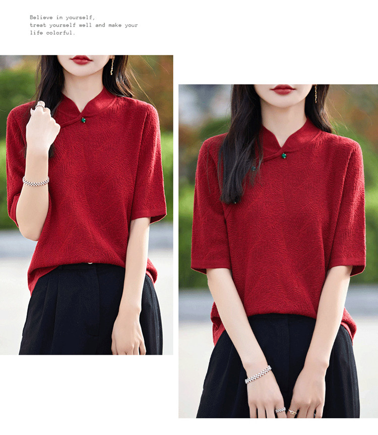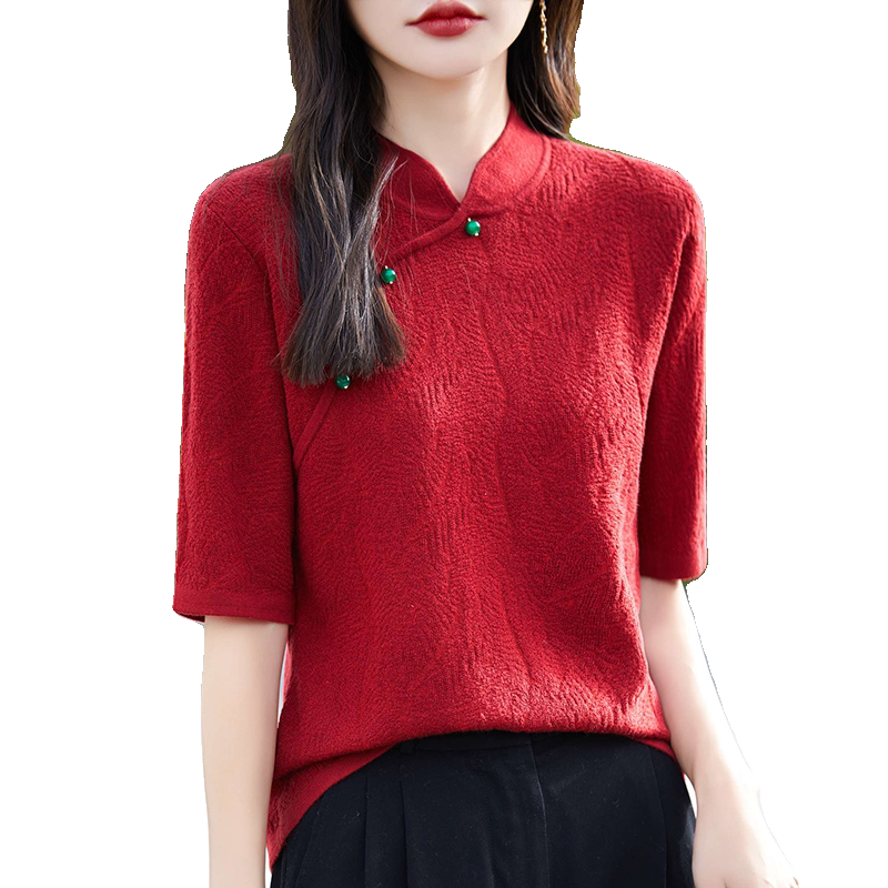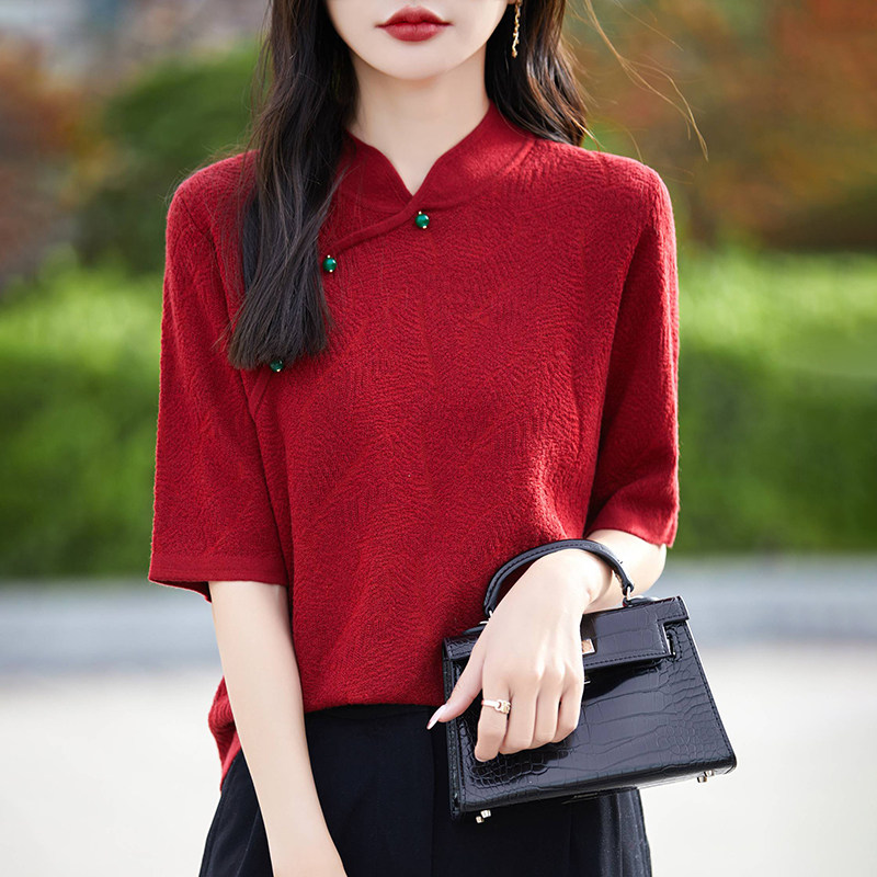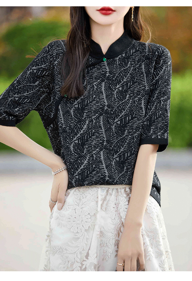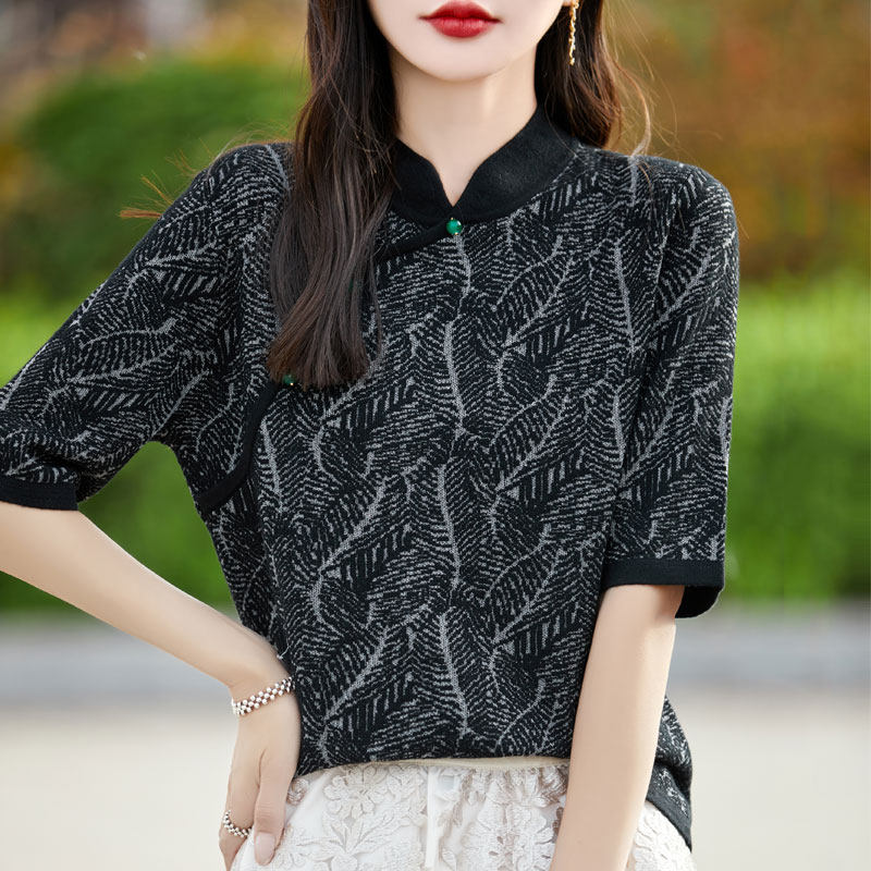 Двухцветный шерстяной ретро свитер, ципао, китайский стиль, короткий рукав