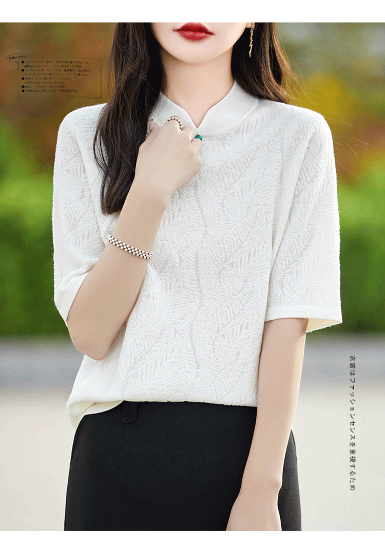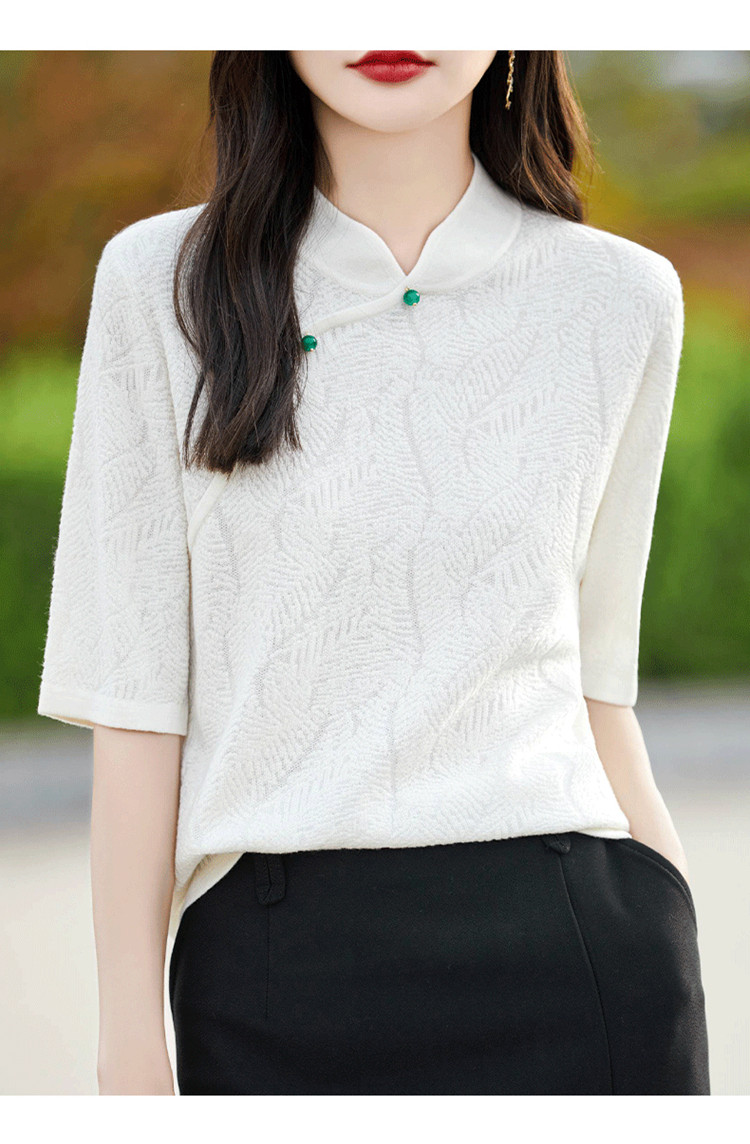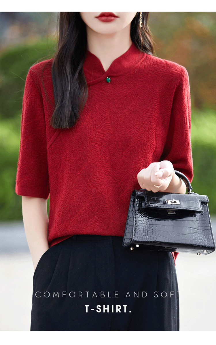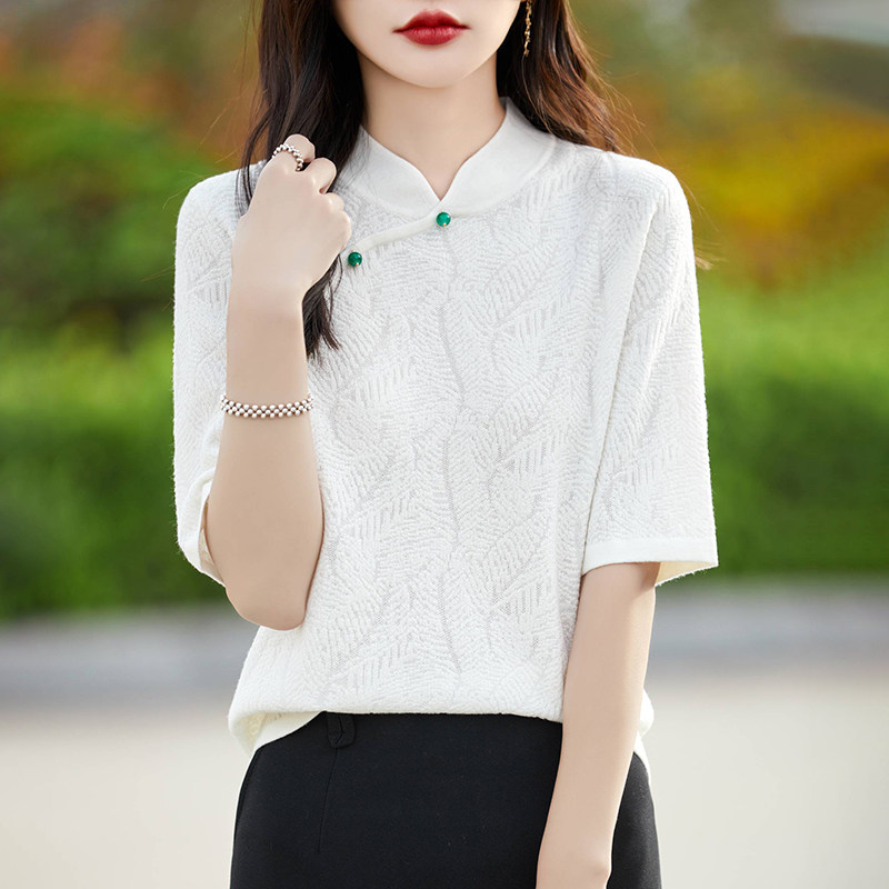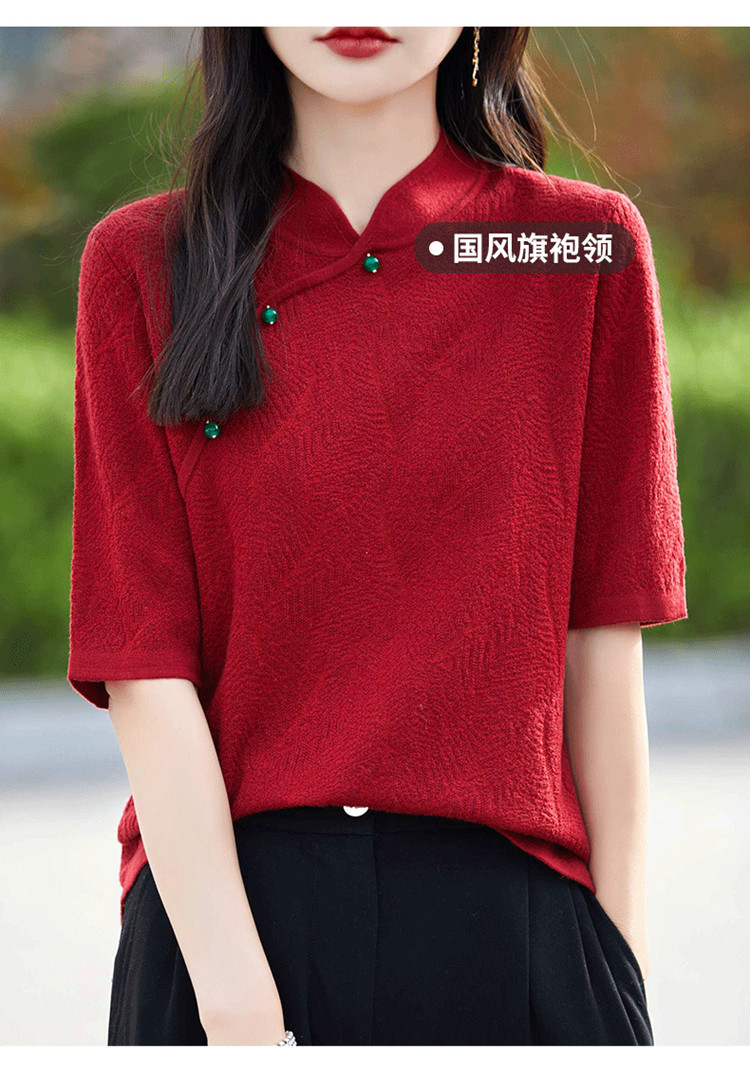 Двухцветный шерстяной ретро свитер, ципао, китайский стиль, короткий рукав