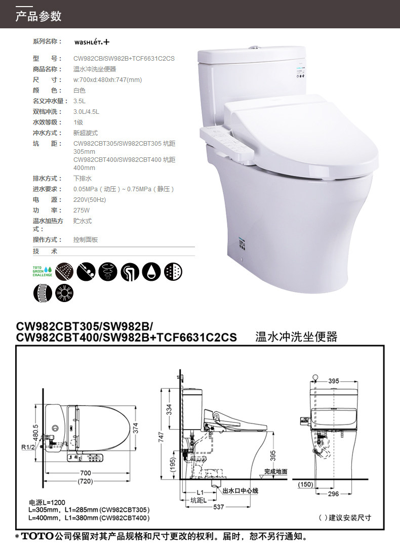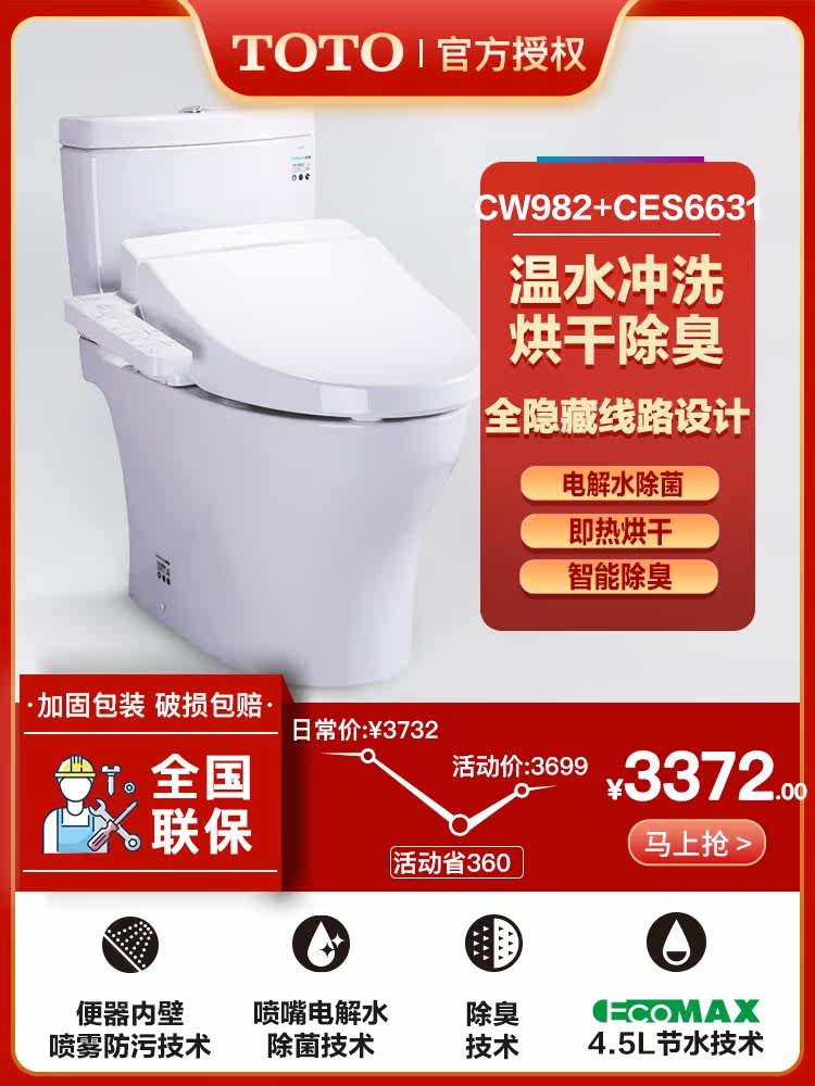 Toto Smart Toilate CES982+TCF6631 Интегрированное домашнее интеллектуальное отопление, промыть туалет
