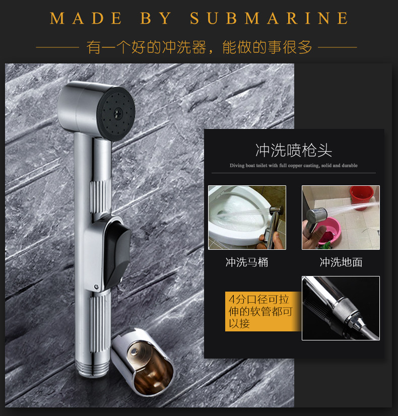 潜水艇 马桶 冲洗器 卫生间 厕所 增压 喷枪 水 龙头 清妇 洗器 私处 屁股