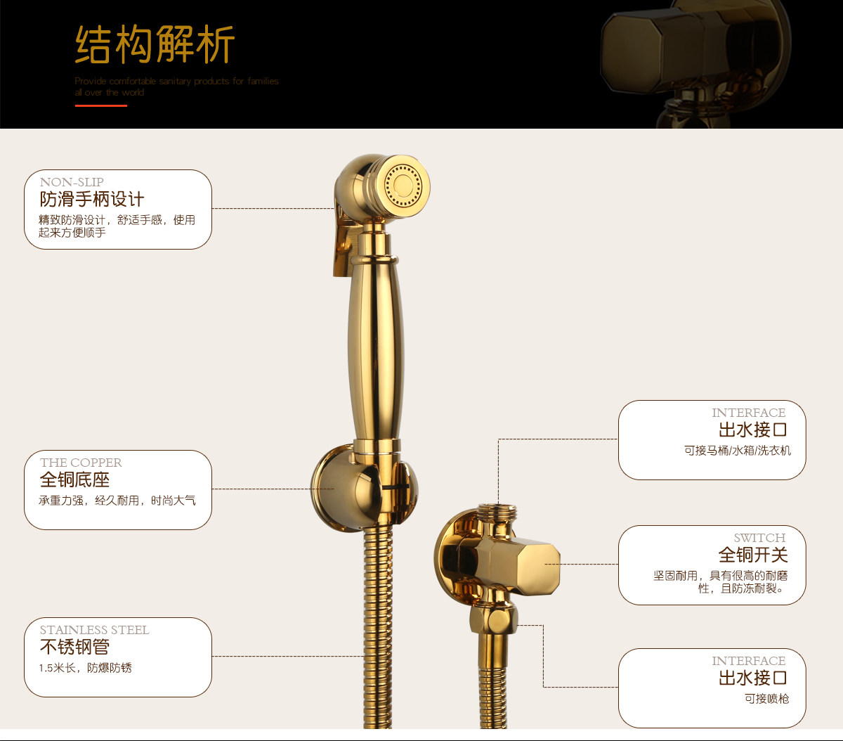 Биде, туалет в форме цветка, медный золотой комплект