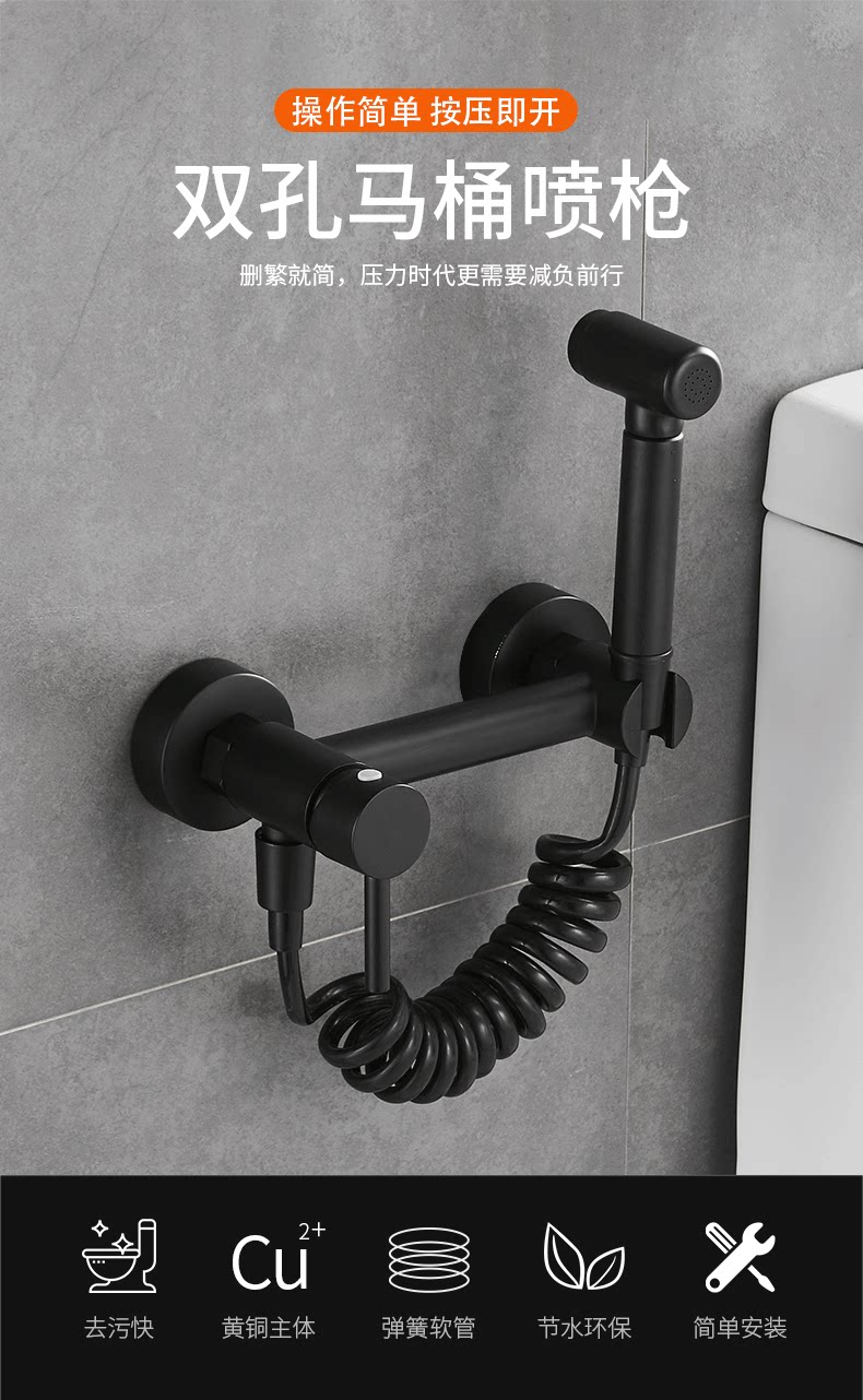 Медный черный гигиенический туалет, биде, горячая и холодная швабра