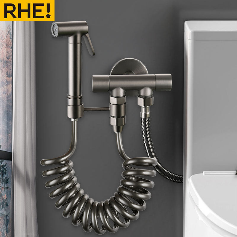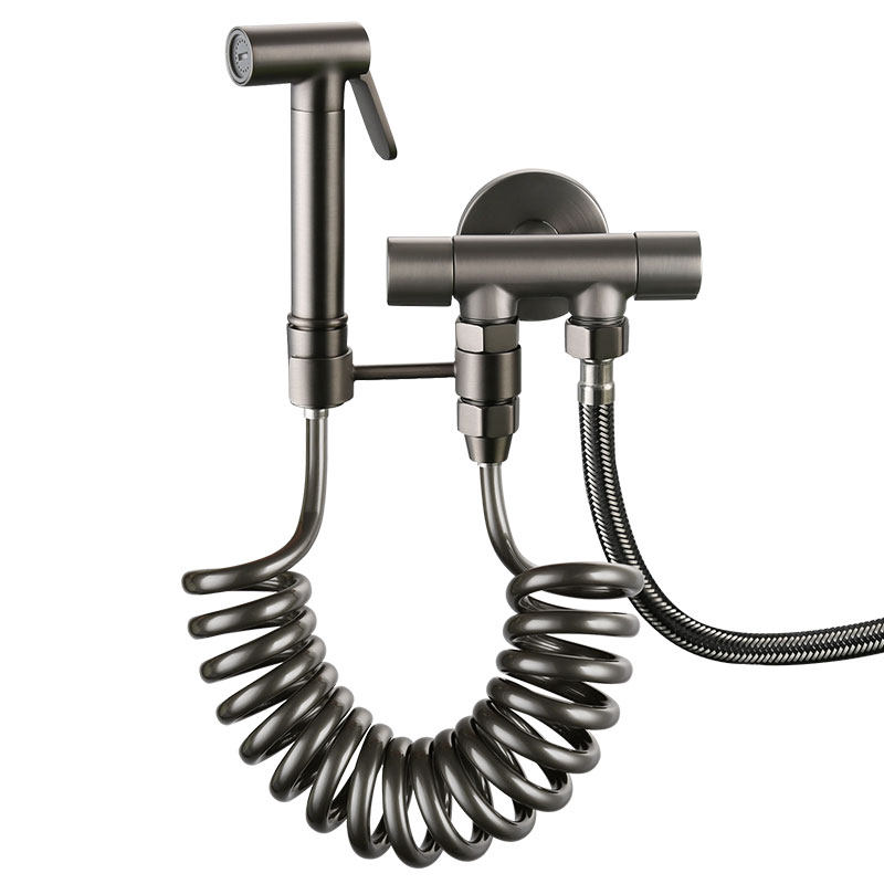 Полный медный пистолет серый туалетный спрей -пистолет в одном трехсловом угловом клапане со стойкой с ванной