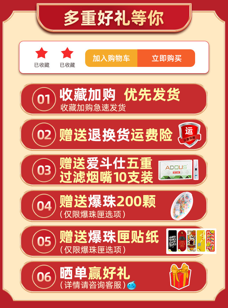 - Грудные бусы (отправьте 200 зерен белых персиков вкуса улун, сигареты фильтра, наклейки)