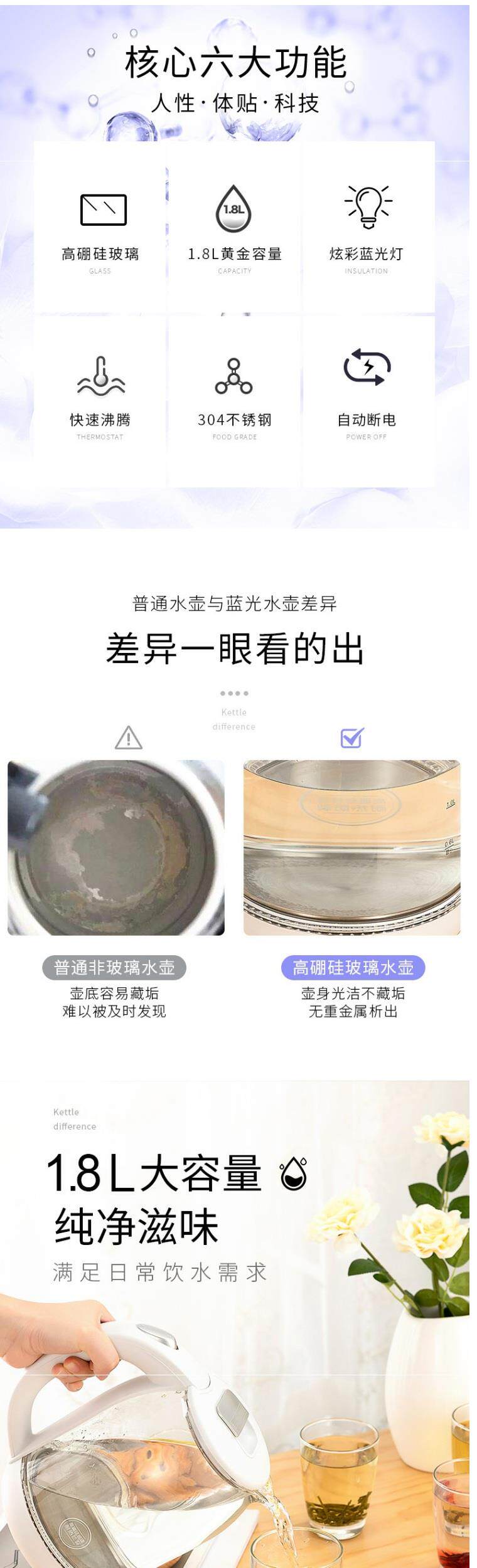 Стеклянный чайник электрический котел для чайного котла 1,8 л.