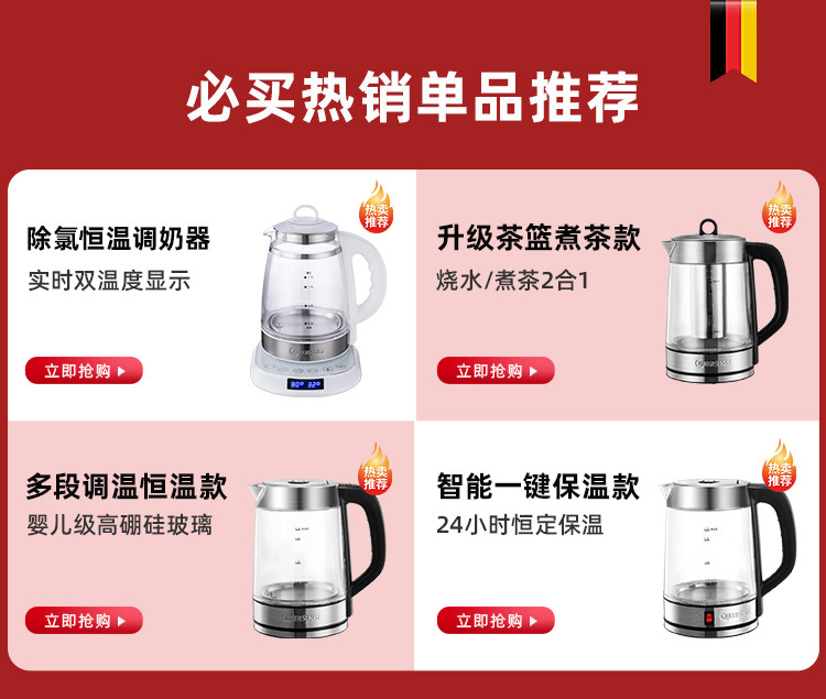 Чайник для домашнего использования, прозрачный стеклянный термос из нержавеющей стали, Германия, нержавеющая сталь AISI 304