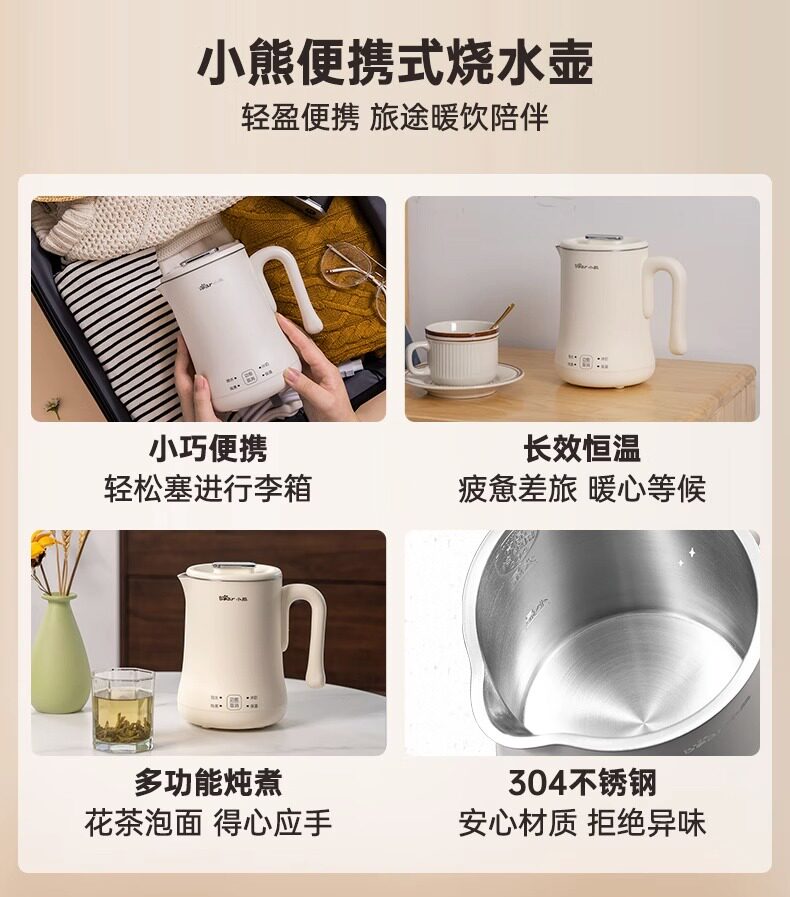 Портативный чайник для путешествий, маленький термос, с медвежатами, поддерживает постоянную температуру