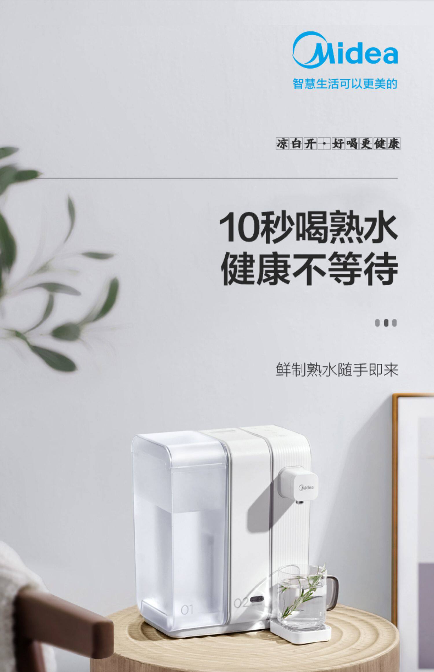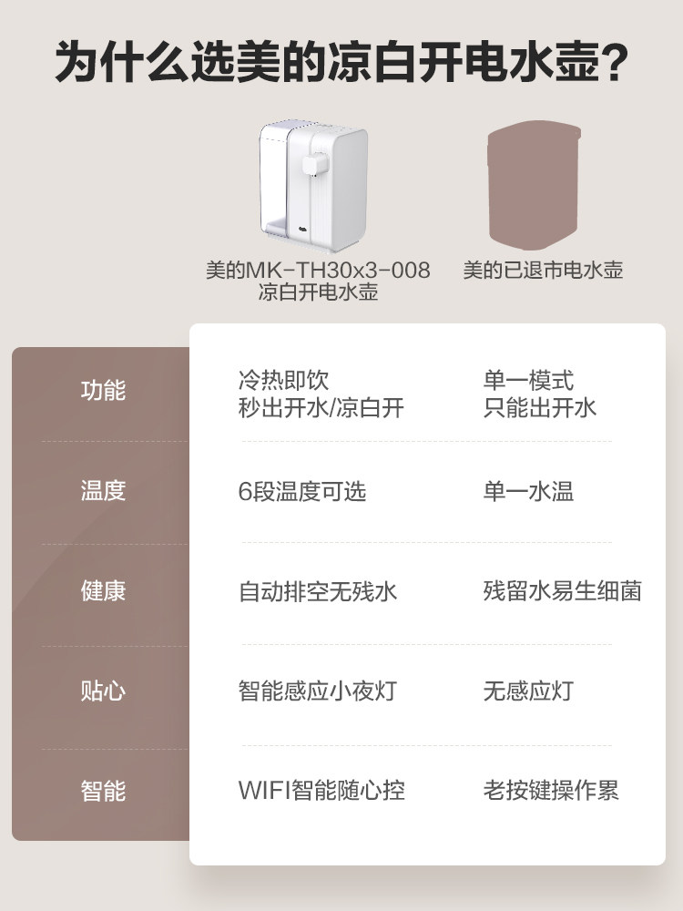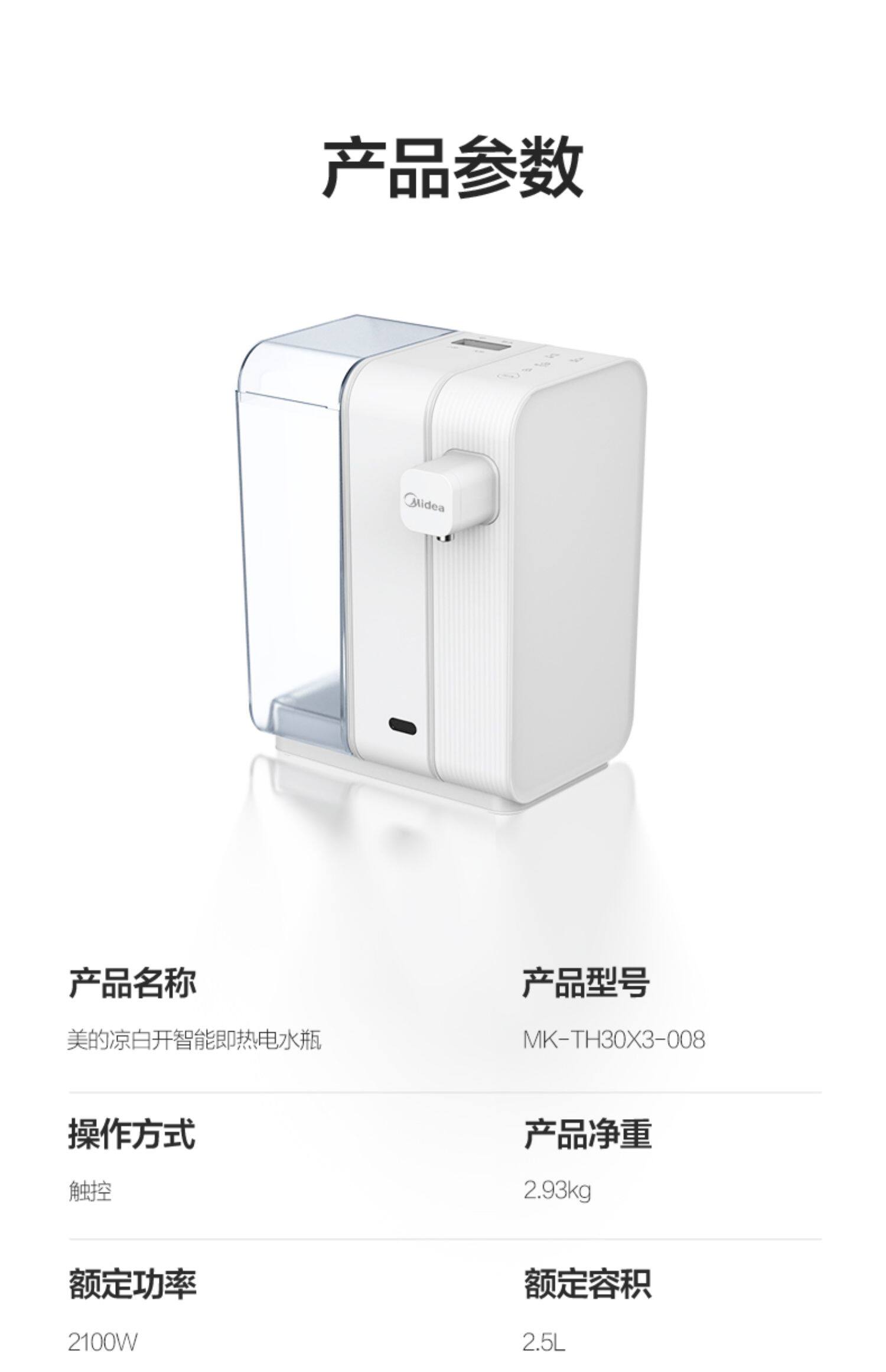 Midea Electric Water Bottle Automatic Water and Electricity Hot Kettle Hovel Hovel Hotes and Cold, Drink Desktop 30x3-008