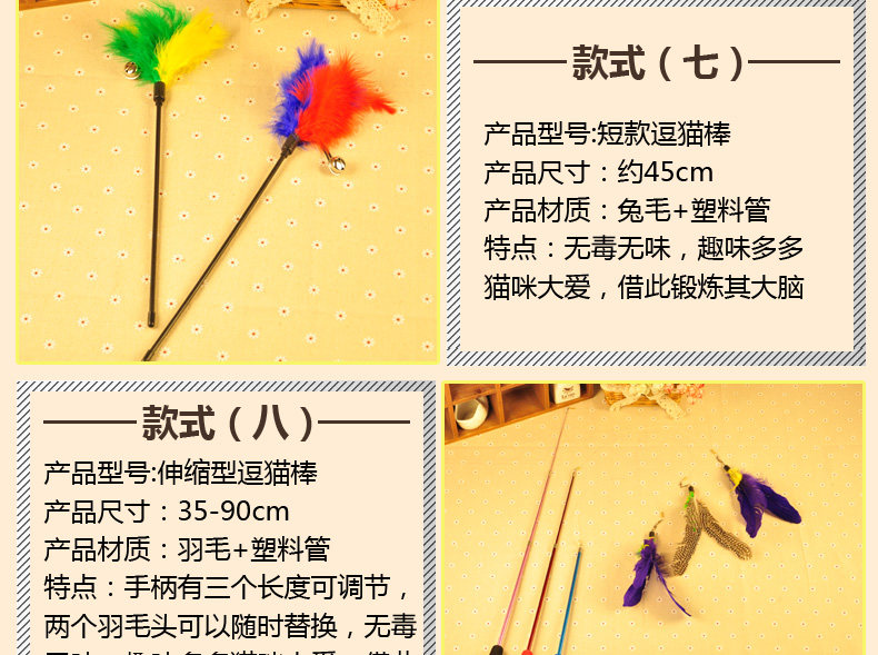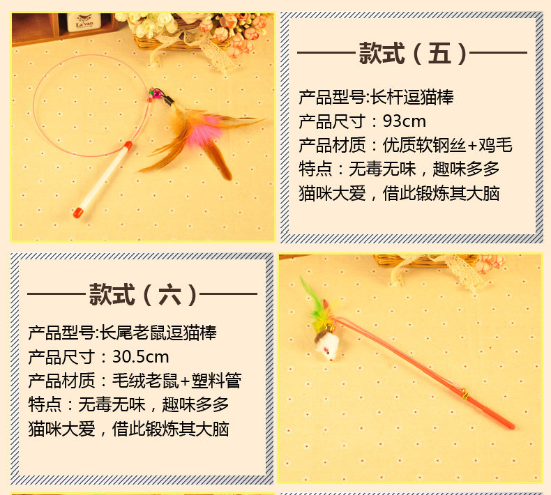 | Цвет: | Длинная стальная проволочная перья для кошачьей палочки, Короткие куриные перья дразнят кошачьи палочки, Длинно -хвост мыши дразнящий кошачий палочка, Кролик мао -бар объединяет кошку, Стальная рыба команда кошачья палочка, Кроличья шар для волос дразня кошка |