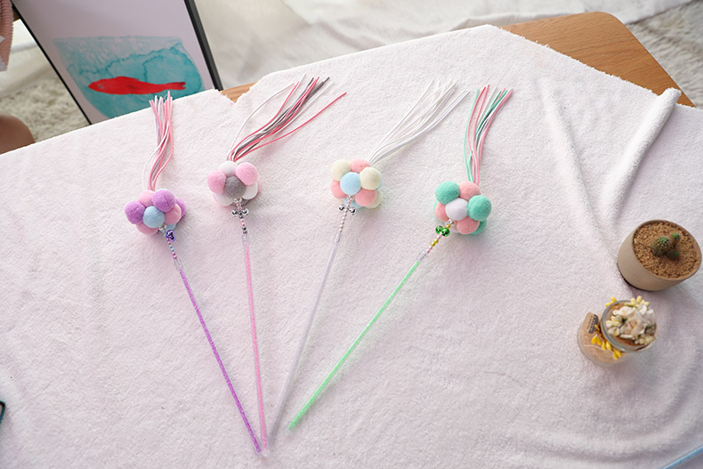 [Имя]: Hoopet Three -color Hairy Ball Dearing Cat Stick (синий+порошок+фиолетовый)/(синий+розовый+белый)/(серый+розовый+белый)/(зеленый+розовый+белый)