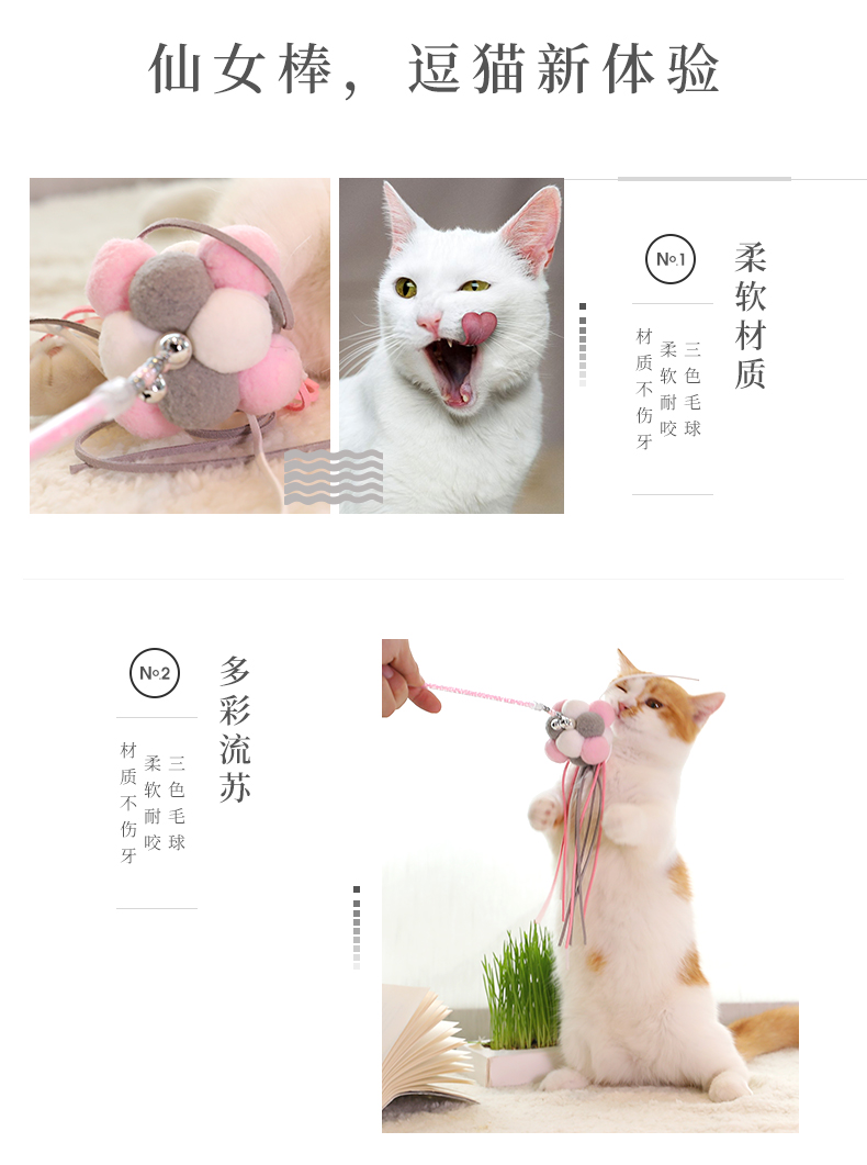 Модель кисточка:3 Цветовой бархат, модный сочетание и сочетание, дизайн кисточки, шикарный и элегантный, не причиняющий вреда кошачьими ртами, Размахивая в воздухе, привлекая внимание кошки, позволяя кошкам любить когти. |