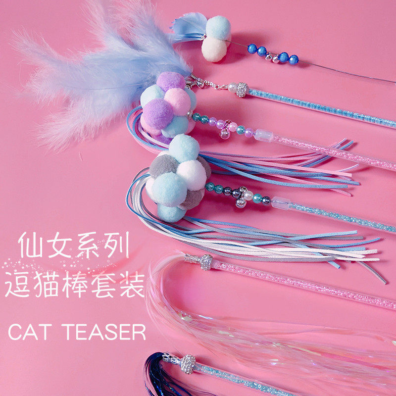 Смешная кошачья палка с длинными стержнями без доставки перья и сказочный колокольчик дразнящие игрушки для кошачьих игрушек самостоятельно -маленькая комбинация набора мыши