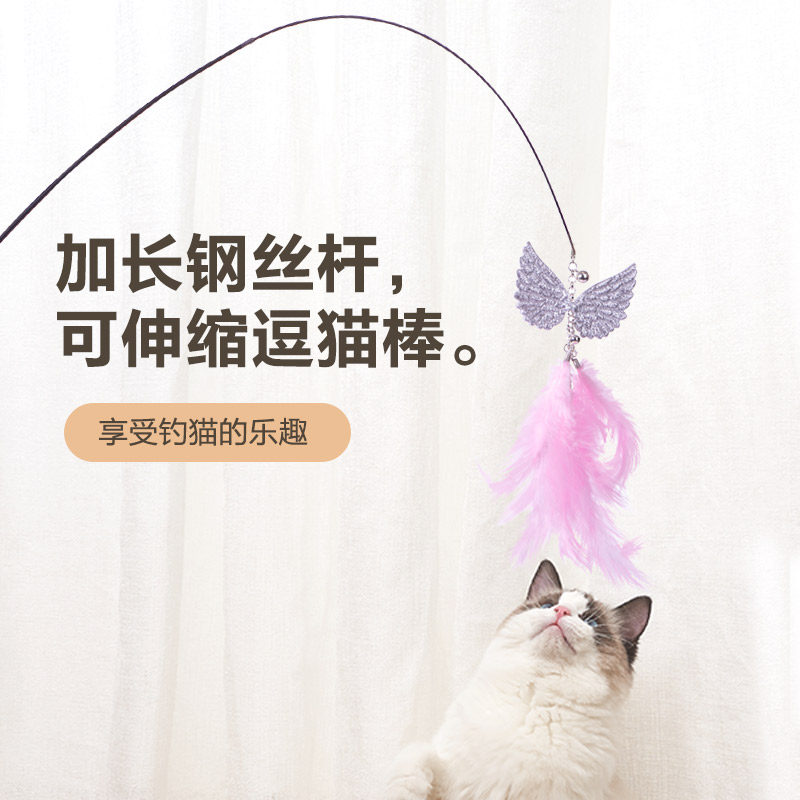 Страсть -Коммурный кошачий палочка Длинный полюс может заменить голову, кусающуюся игрушку для кошек, котенок, он, он, hi bell, перьев кошки