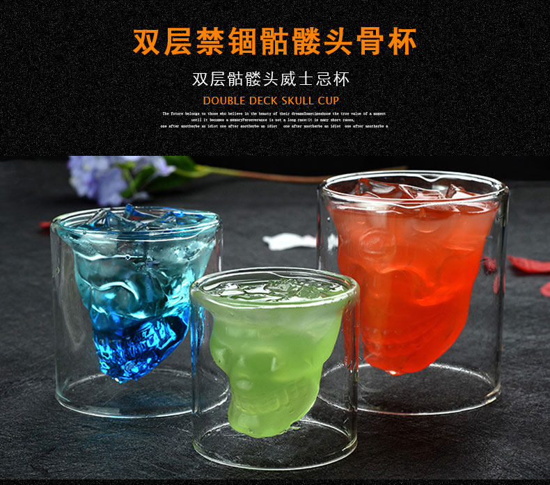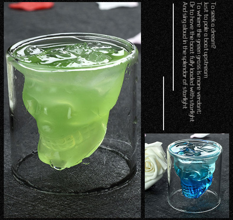 Бесплатная доставка двойной -слоя тюремного заключения чашка черепа чашка вина пивные бокалы виски чашка черепа пират -чашка