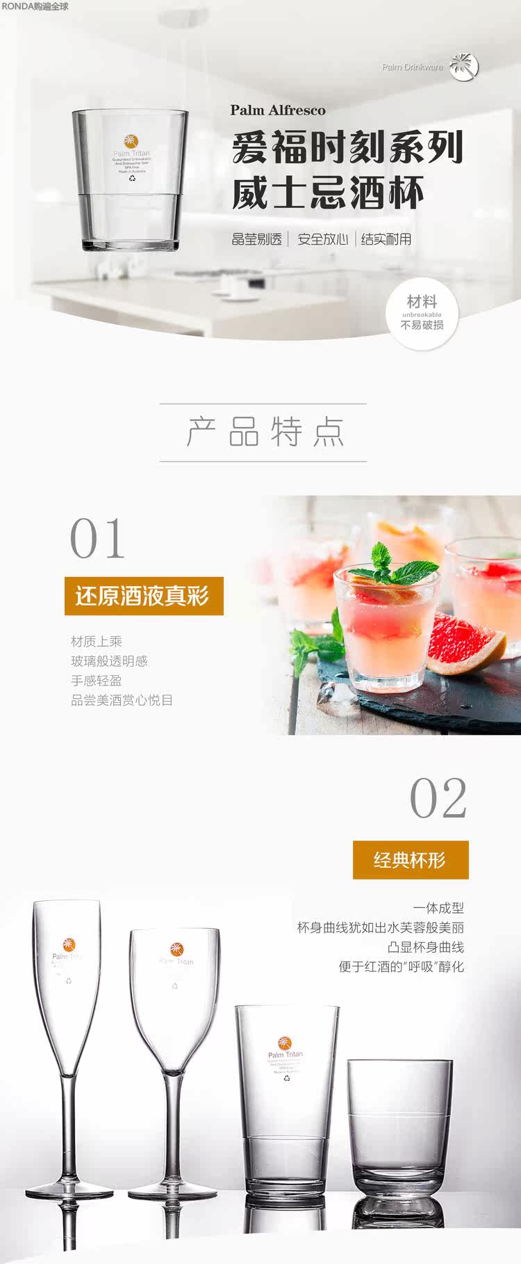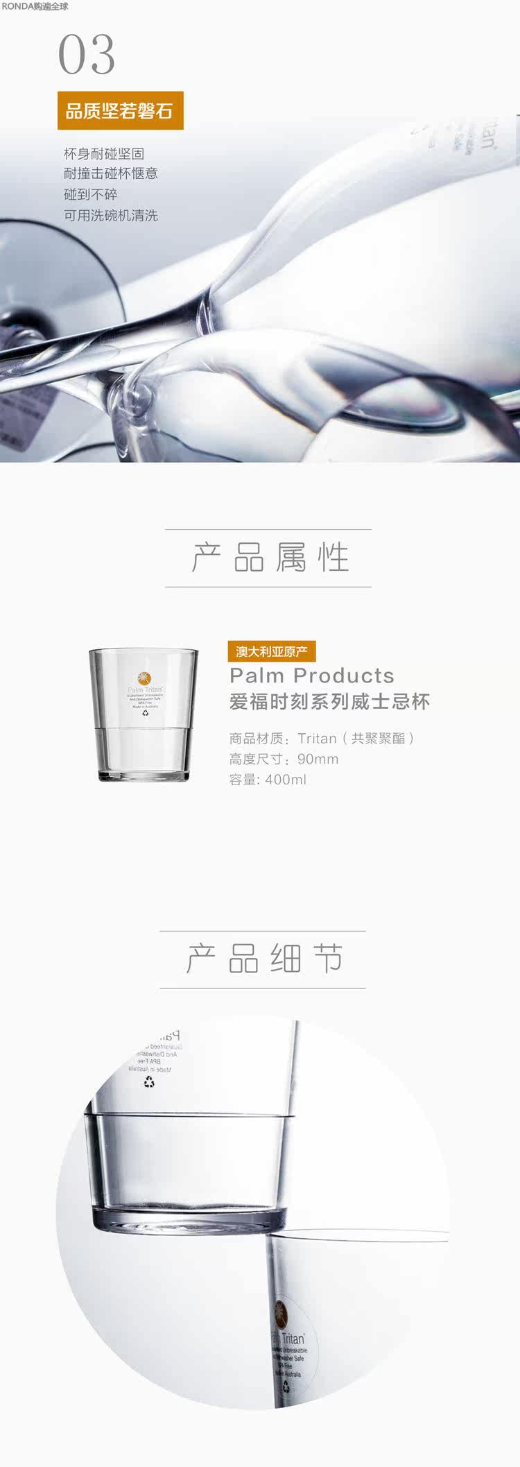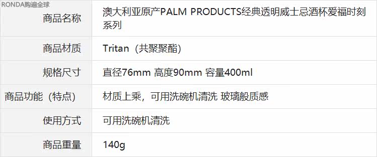Австралия импортированная пальмовая продукция прозрачная и не приготовленная Tritan Whiskey Glass Glass Grange 400 мл