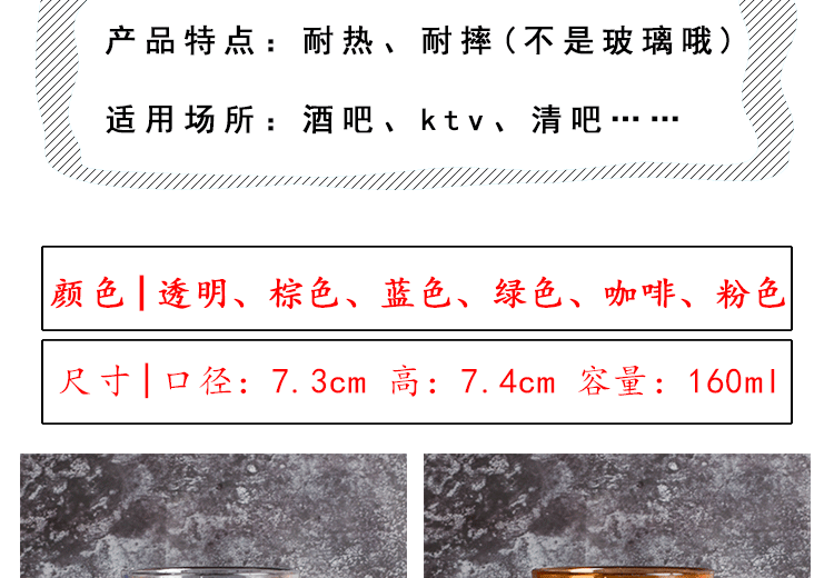 Акриловый пластиковый бокал для виски, толстое донышко, увеличенная толщина, PC-пластик, защита при падении
